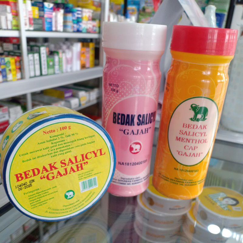 Bedak Salicyl Gajah Menthol/Non Menthol 100 gram Botol / Pot