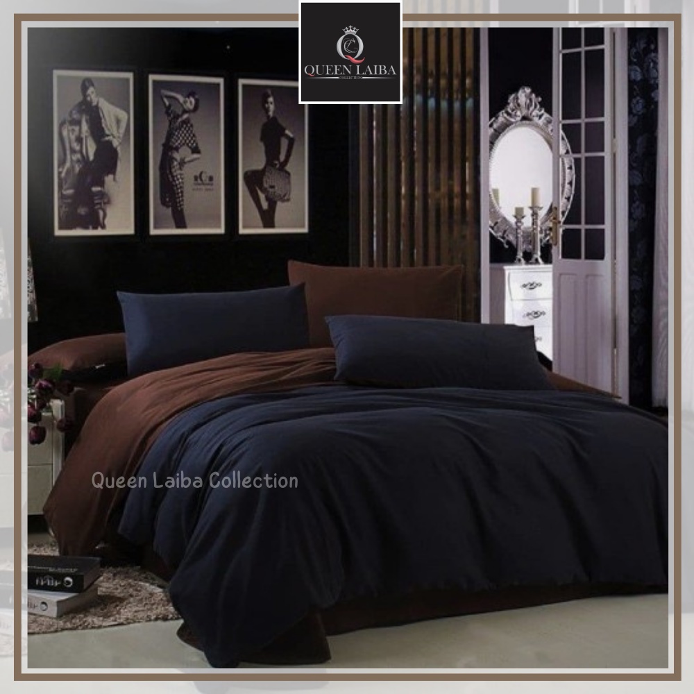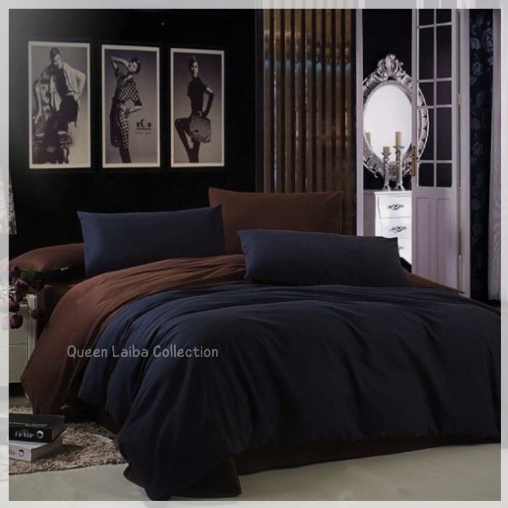 Bedcover Set Motif Kombinasi Hitam Polos Coklat Tua Polos Size Single Queen King