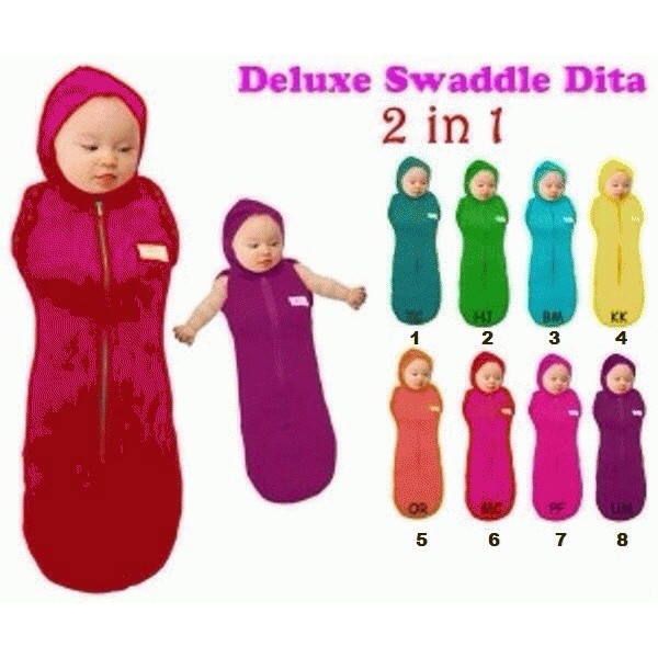 Bedong Bayi Deluxe Swaddle 2 in 1 Dita ( Bedong Baby Instan Topi Polos Warna )
