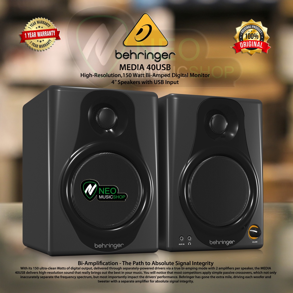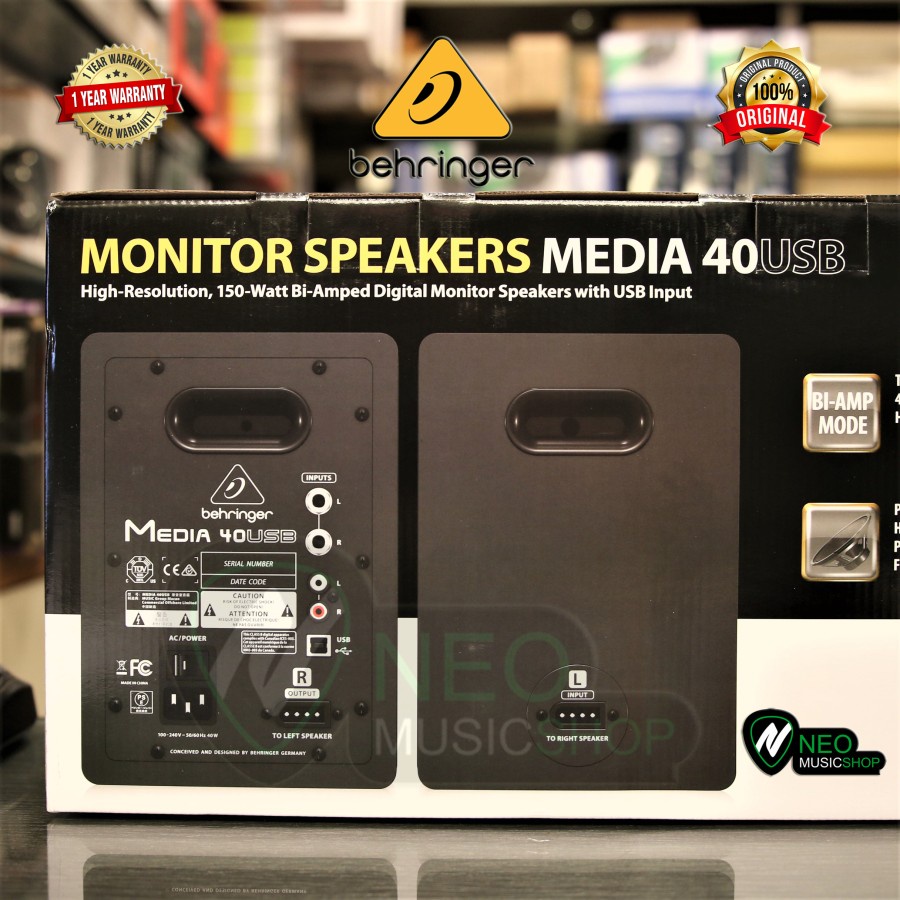 Behringer MEDIA40USB MEDIA 40USB MEDIA40 USB 150 Watt Bi-Amped Studio Monitor