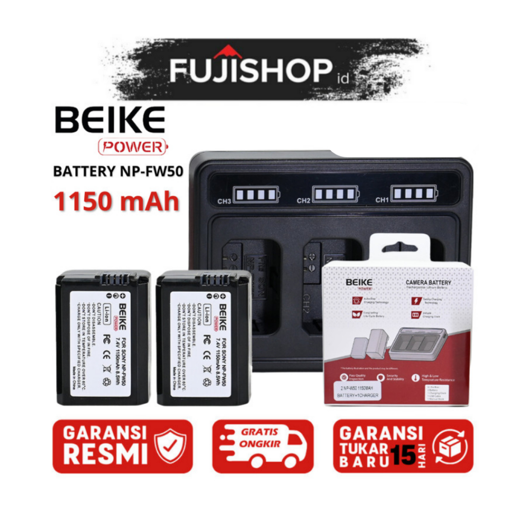 Beike Power NP-FW50 Battery + Charger Camera Sony 1150 mAh