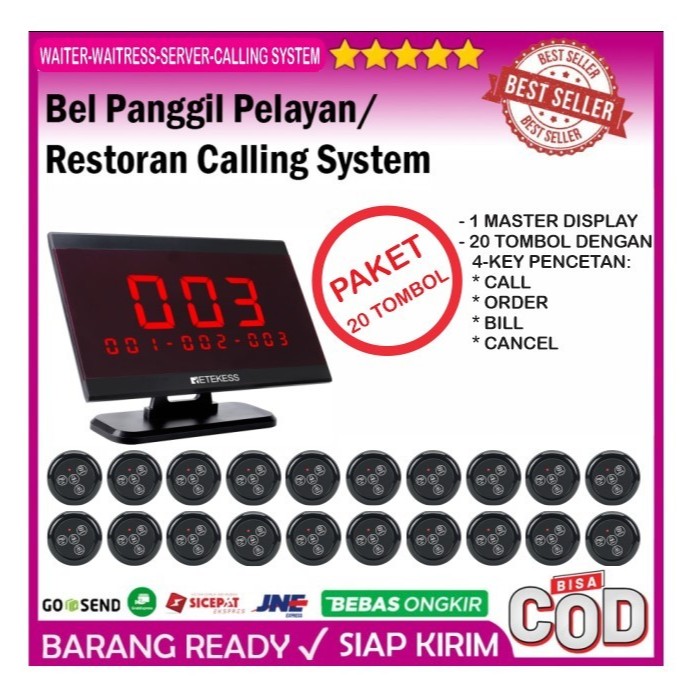 Bel Panggil Pelayan Restaurant Calling System 1 Display 20 Call Button - 4key Order, Call, Pay, Cancel
