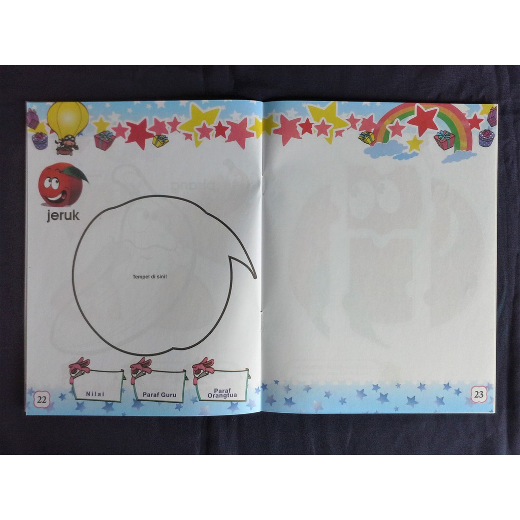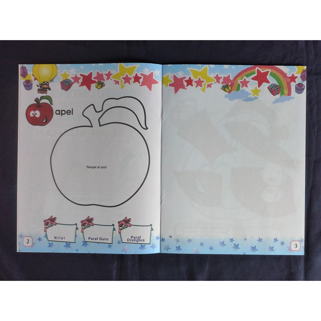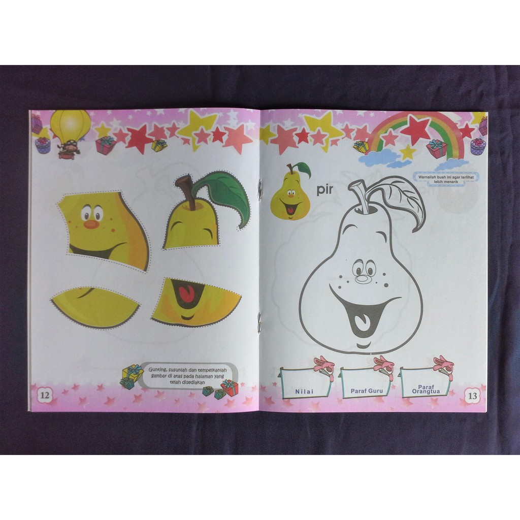 Belajar Menggunting Menempel dan Mewarnai Buah-buahan