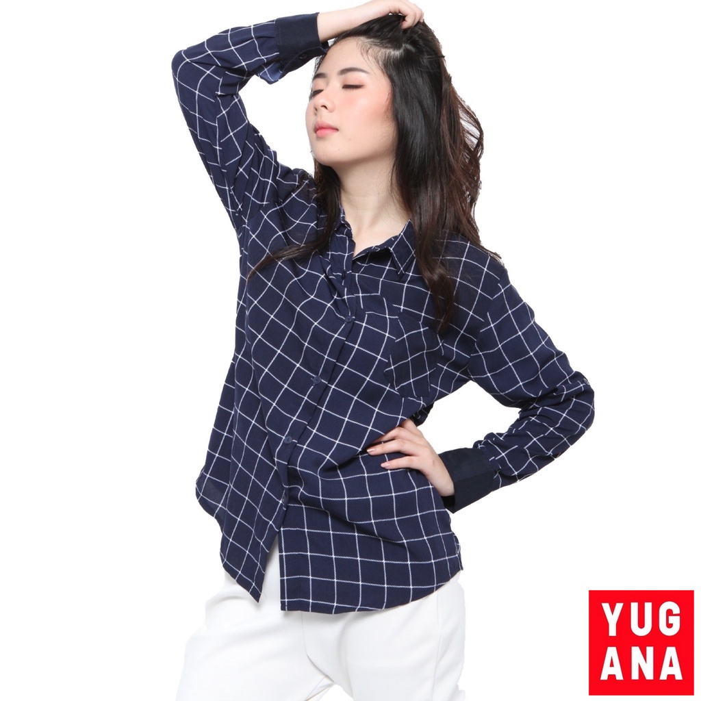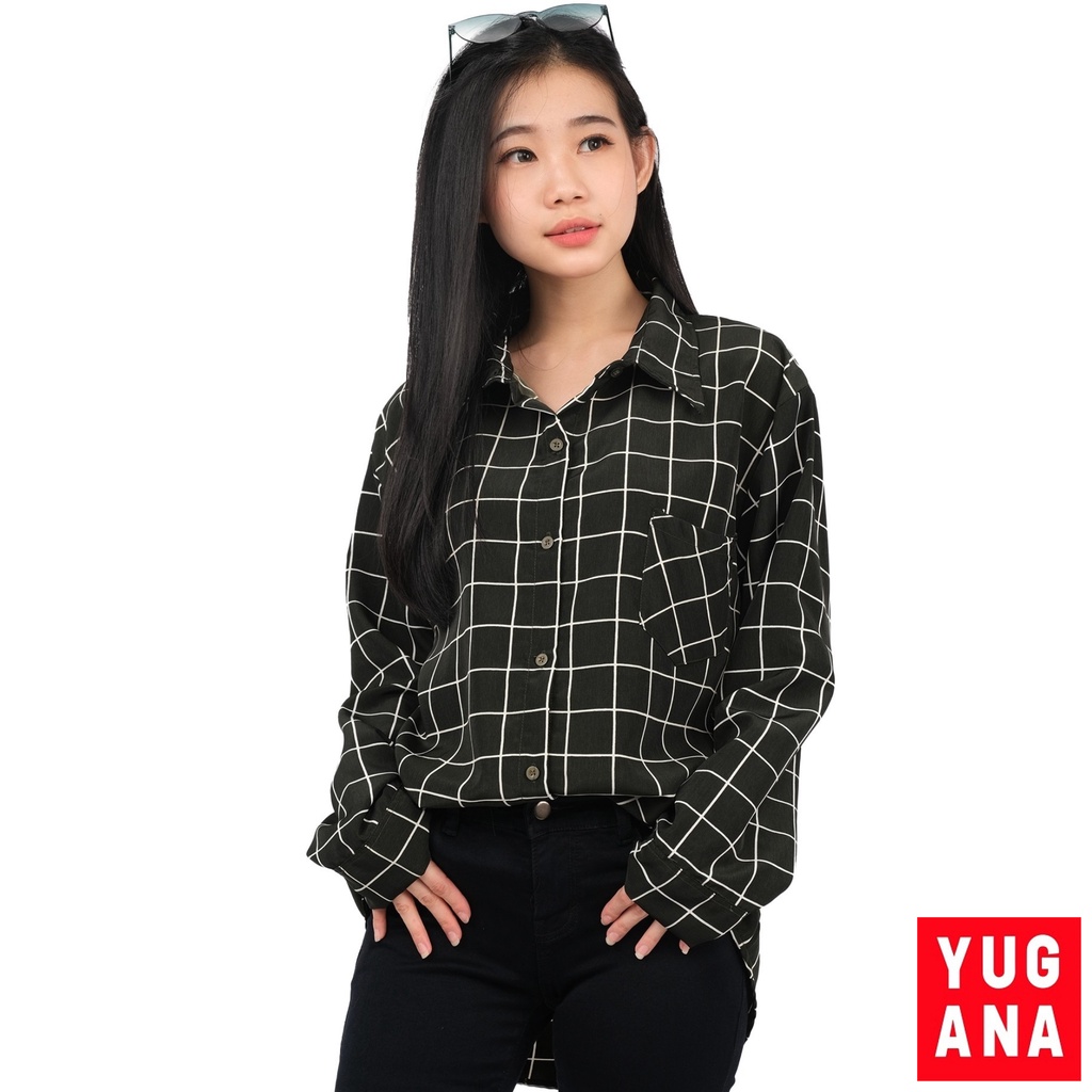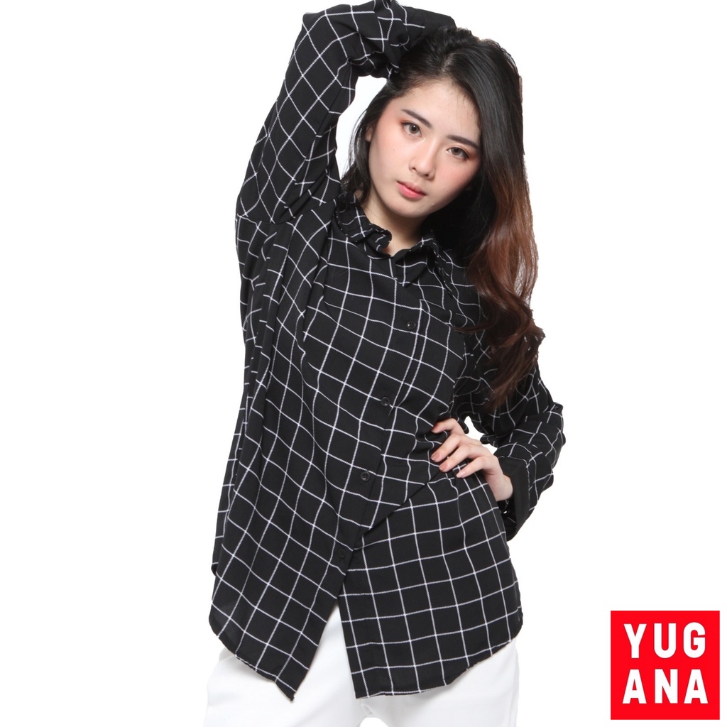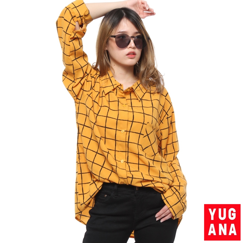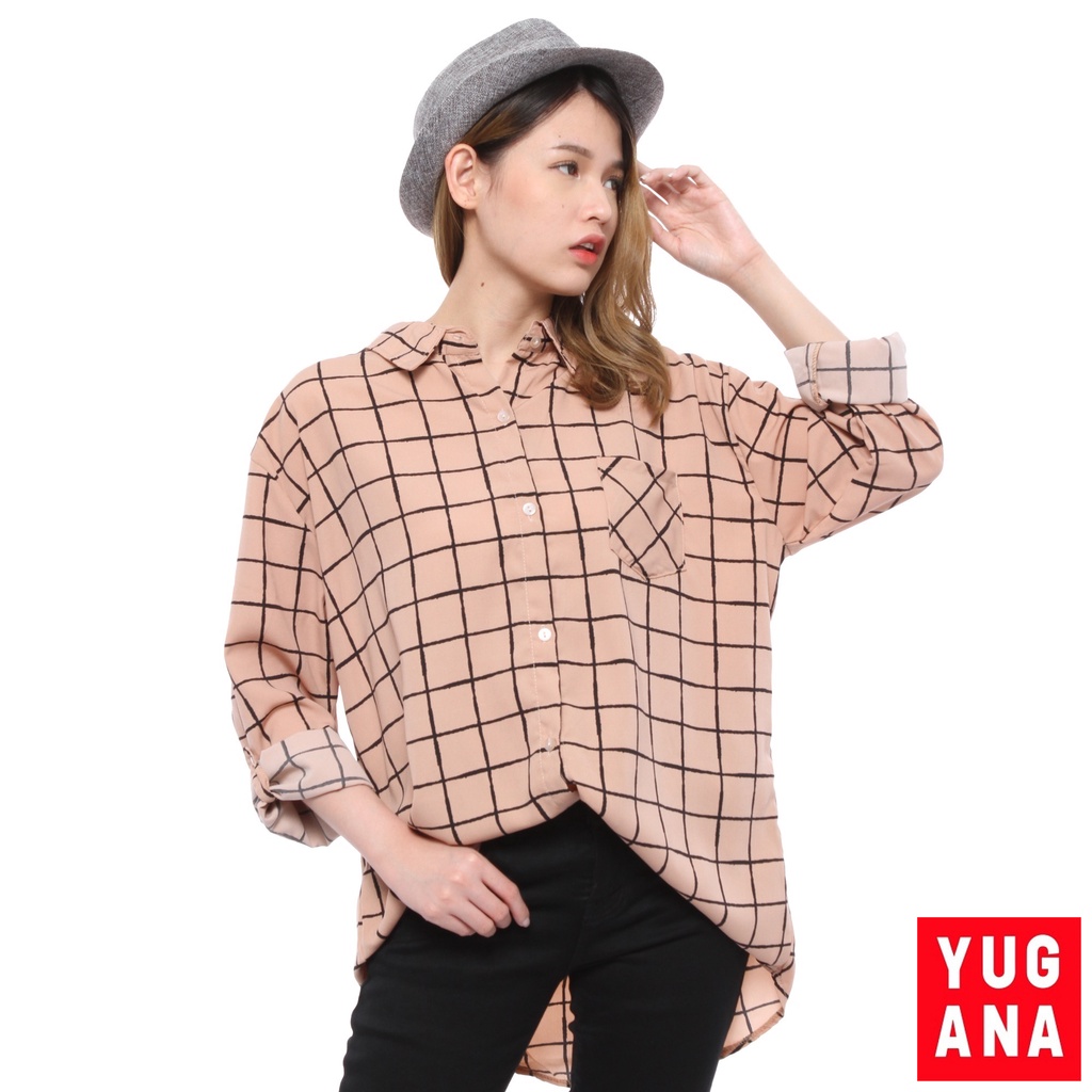 BL - 06177 Kemeja Oversize Wanita Lengan Panjang Kotak