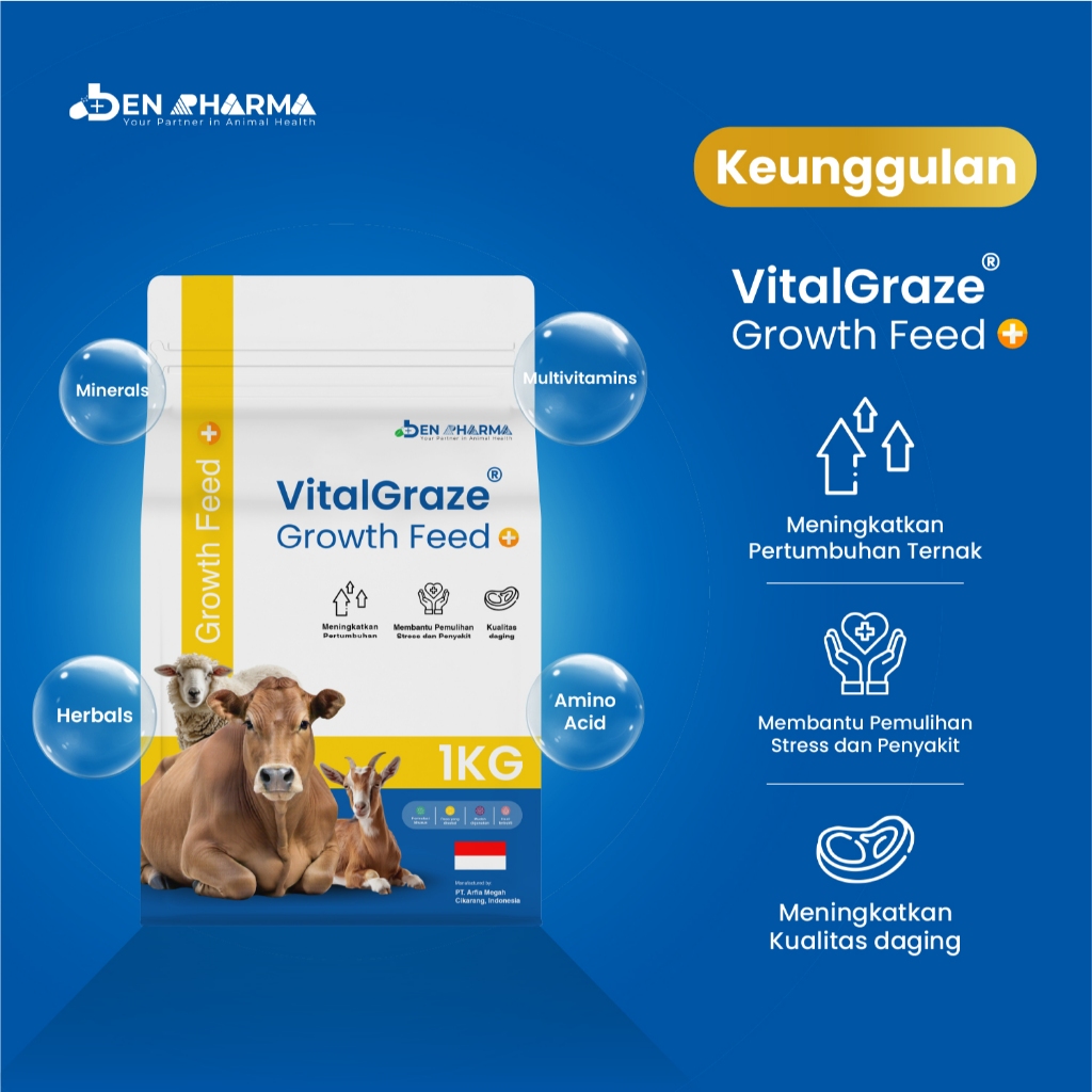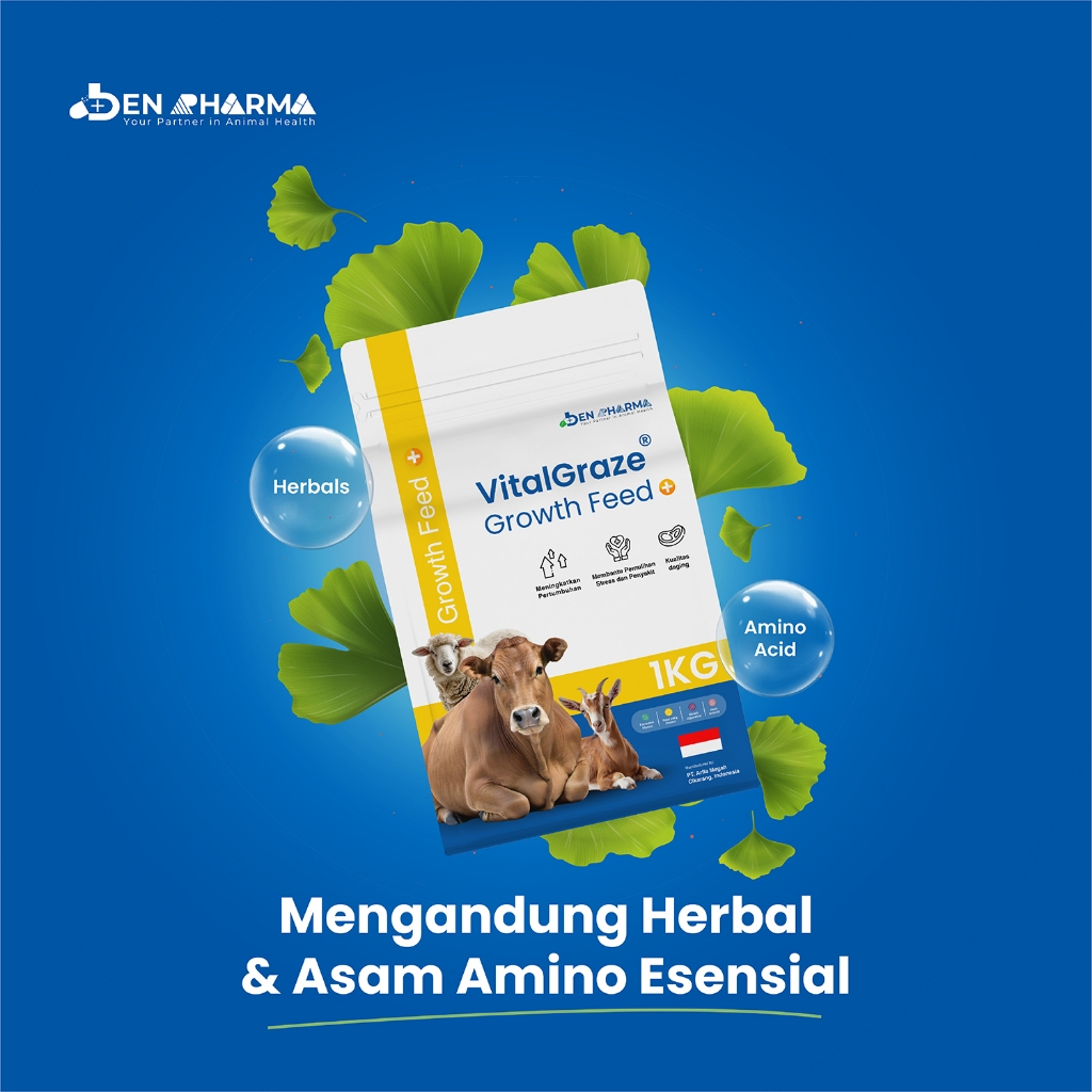 Ben Pharma VitalGraze Growth Feed+ - Vitamin Mineral & Herbal Penggemuk Sapi Kambing dan Domba - 1kg