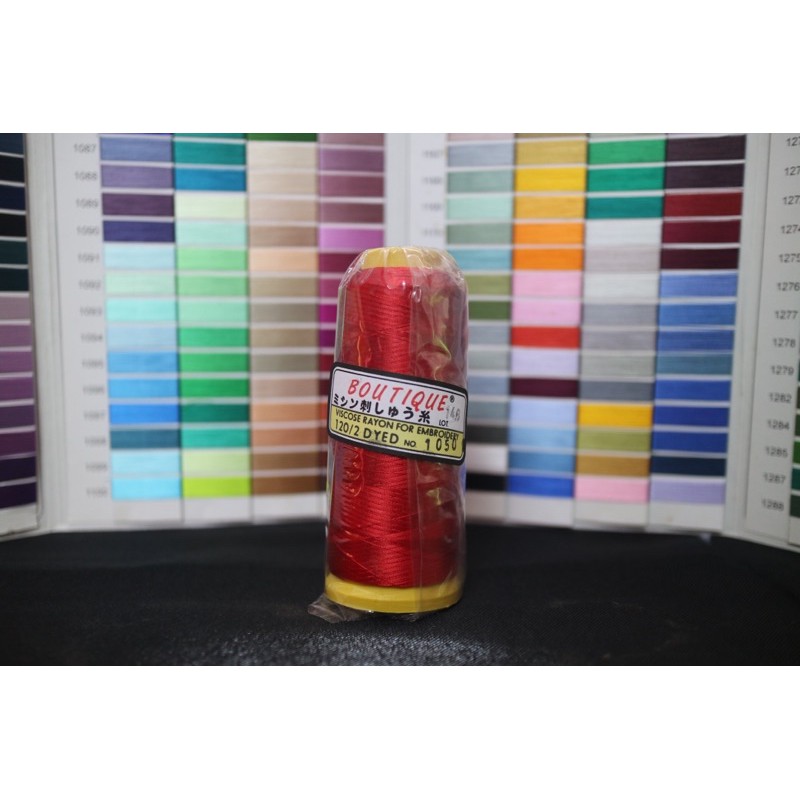 Benang Bordir Rayon Merk BOUTIQUE 120D/2 Katalog Warna Kepala 1 (Ukuran 3000m)