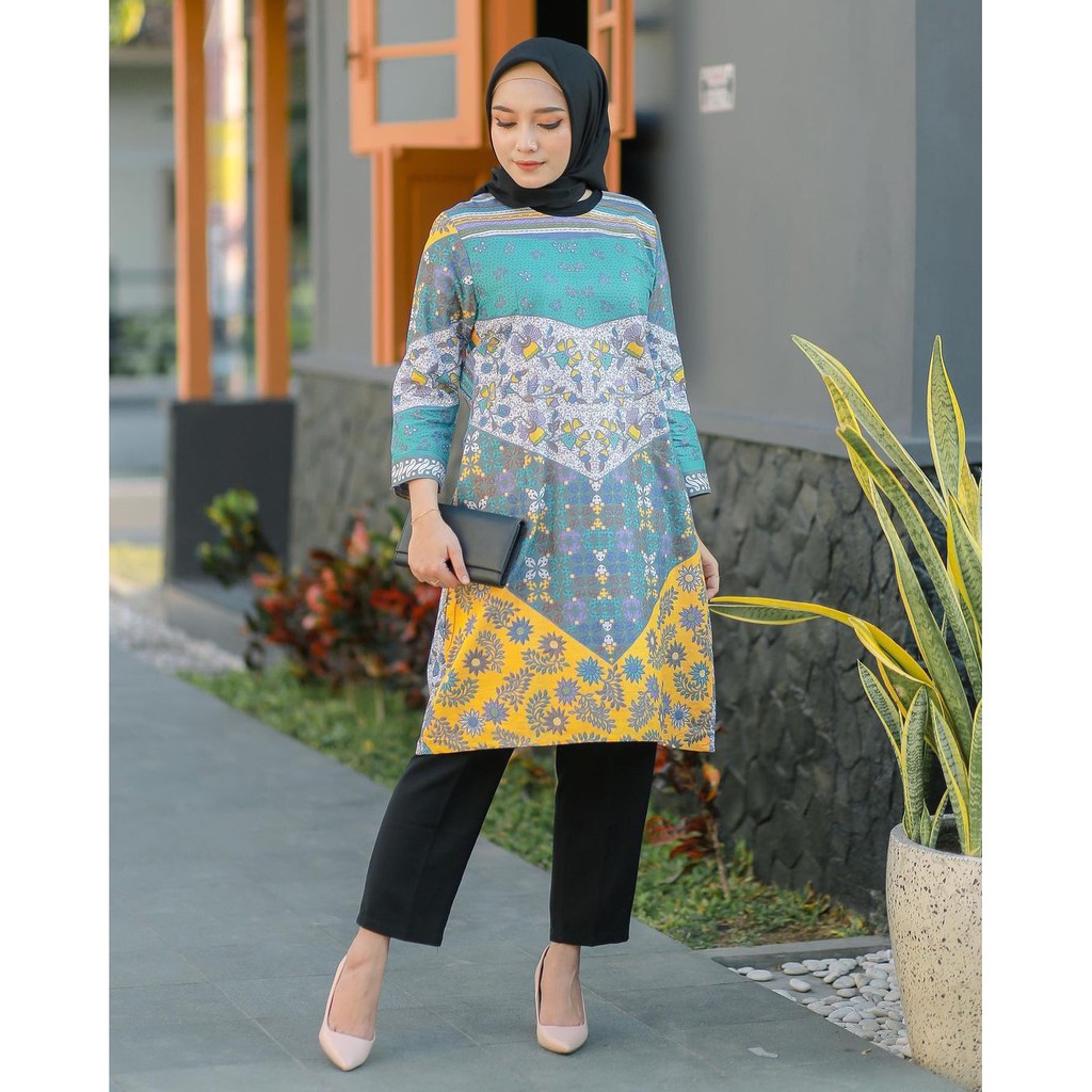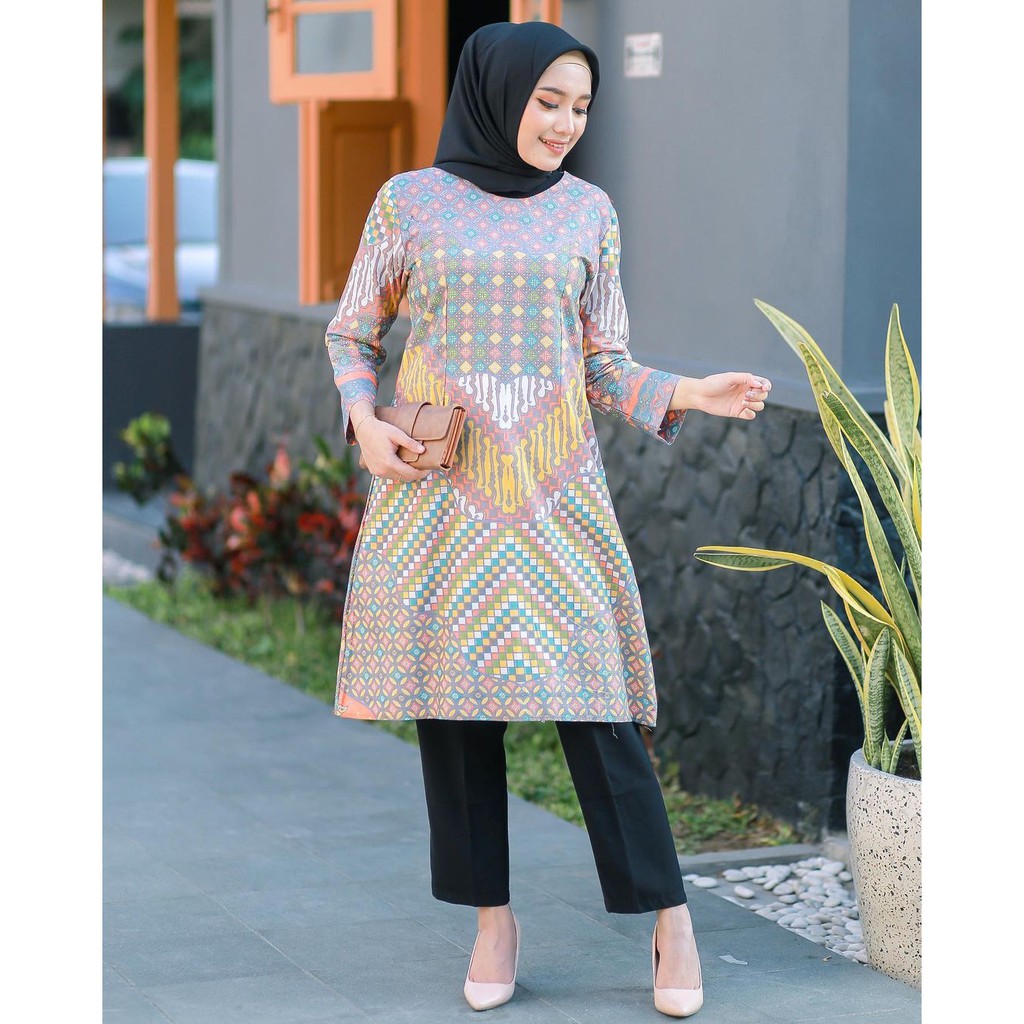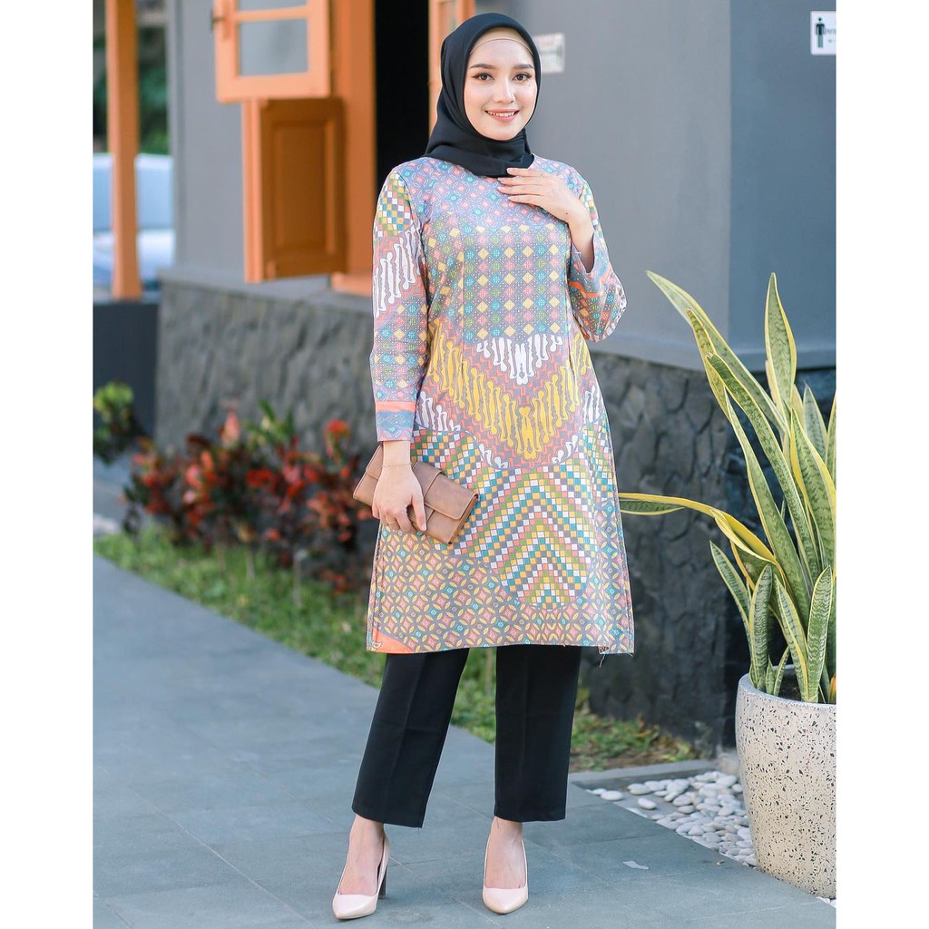 Benang Raja Tunik Batik Wanita Lengan Panjang Motif Sinaran Soft