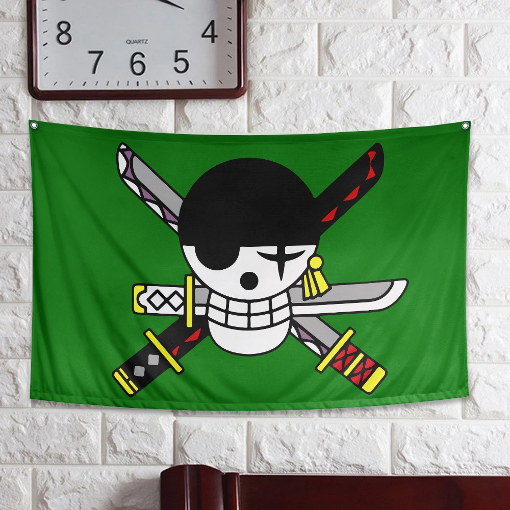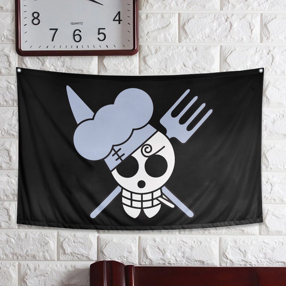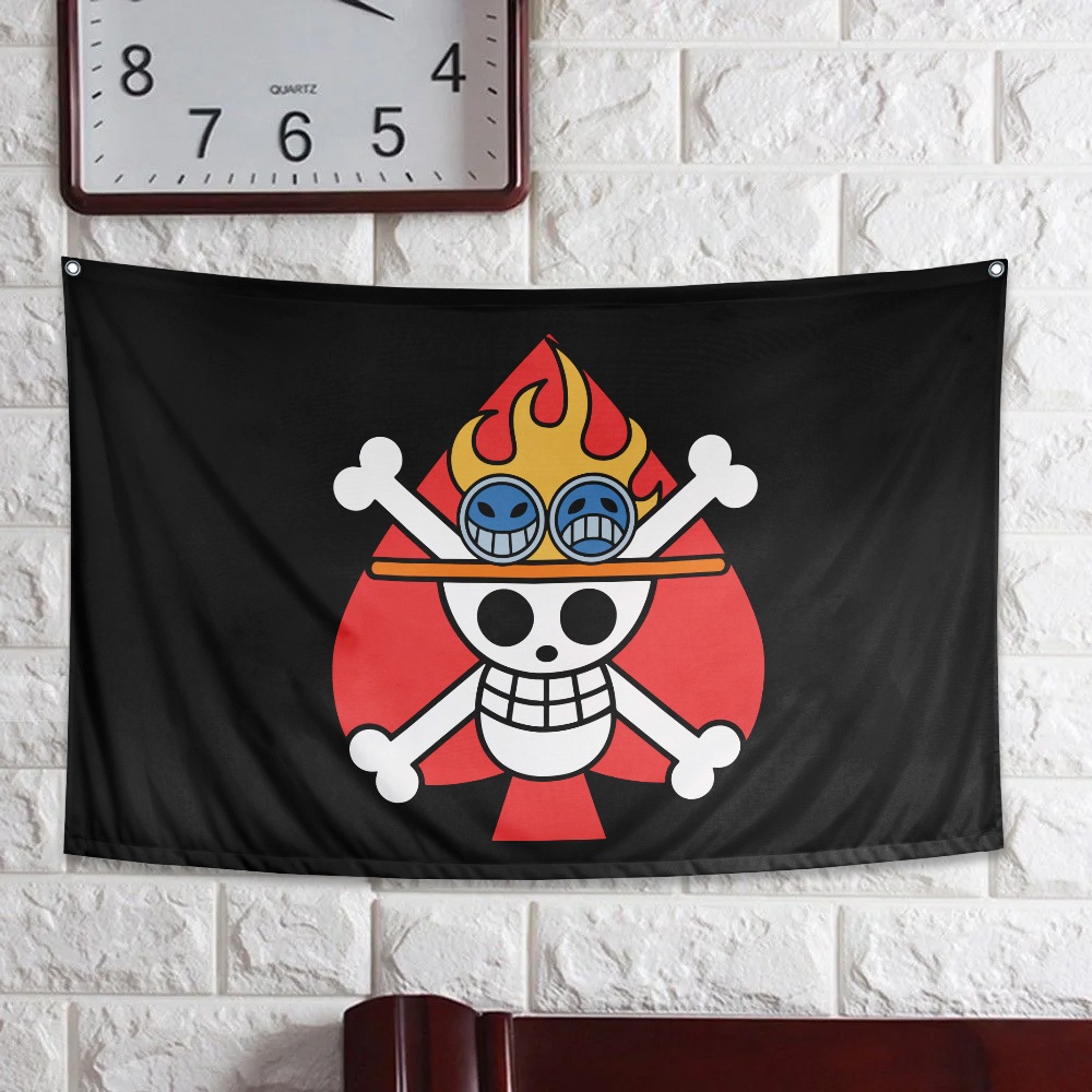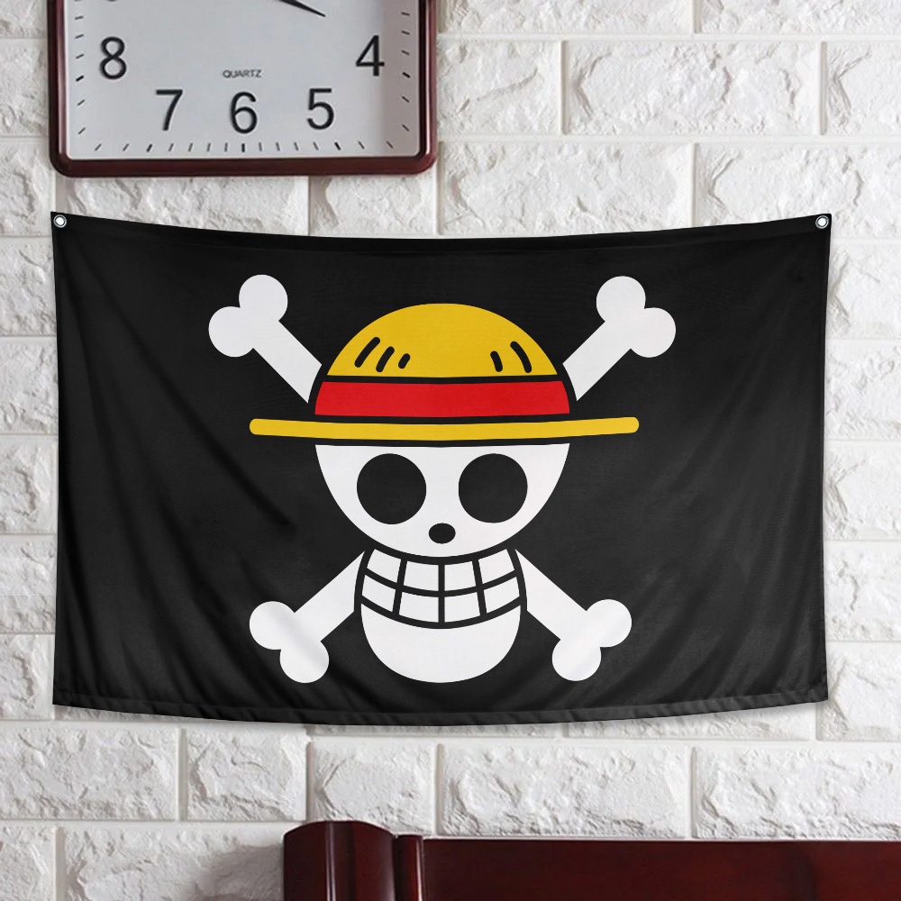 Bendera One Piece - Desain Bendera Luffy Jolly Roger untuk Penggemar One Piece - Bahan Satin Peles - Ukuran Kecil hingga Besar