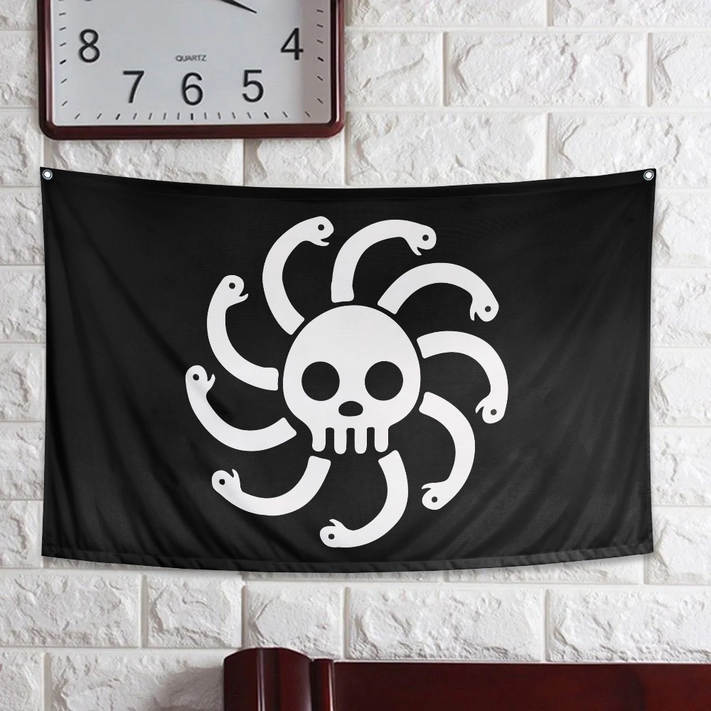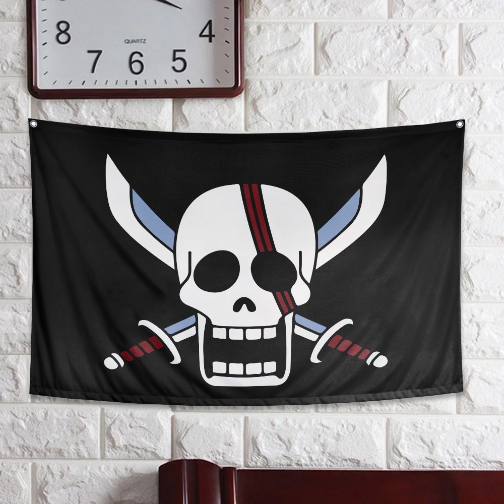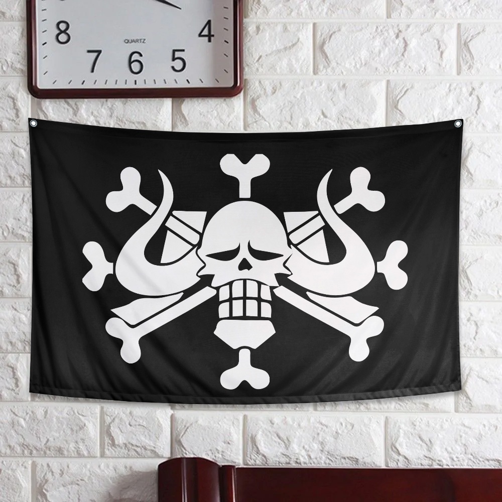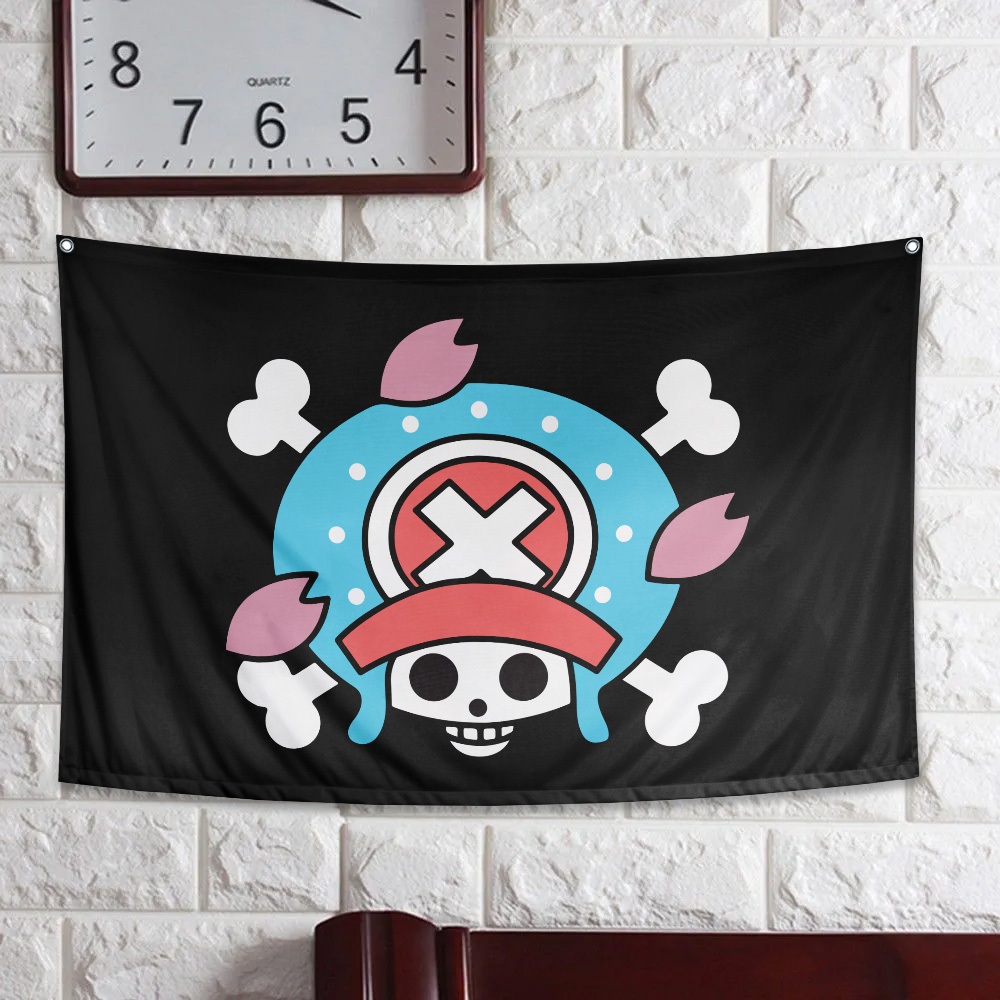 Bendera One Piece - Desain Bendera Luffy Jolly Roger untuk Penggemar One Piece - Bahan Satin Peles - Ukuran Kecil hingga Besar