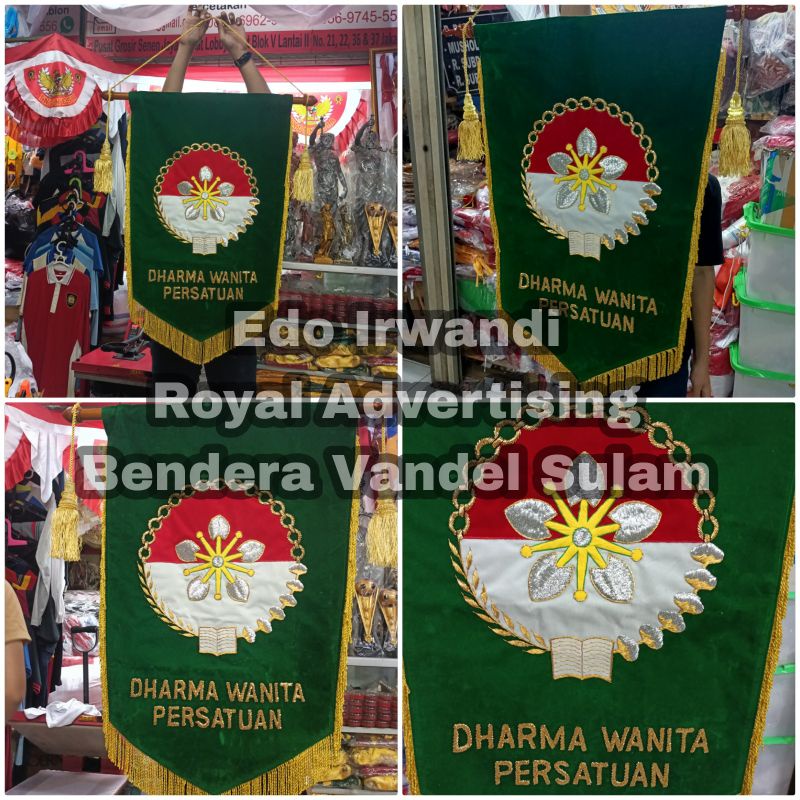 Bendera Ruangan Dharma Wanita Persatuan Sulam Bendera Vandel Dharma Wanita Persatuan Sulam Bendera Pataka Sulam Dharma Wanita Persatuan Sulam Emas dan Perak Ready Stock Berkualitas