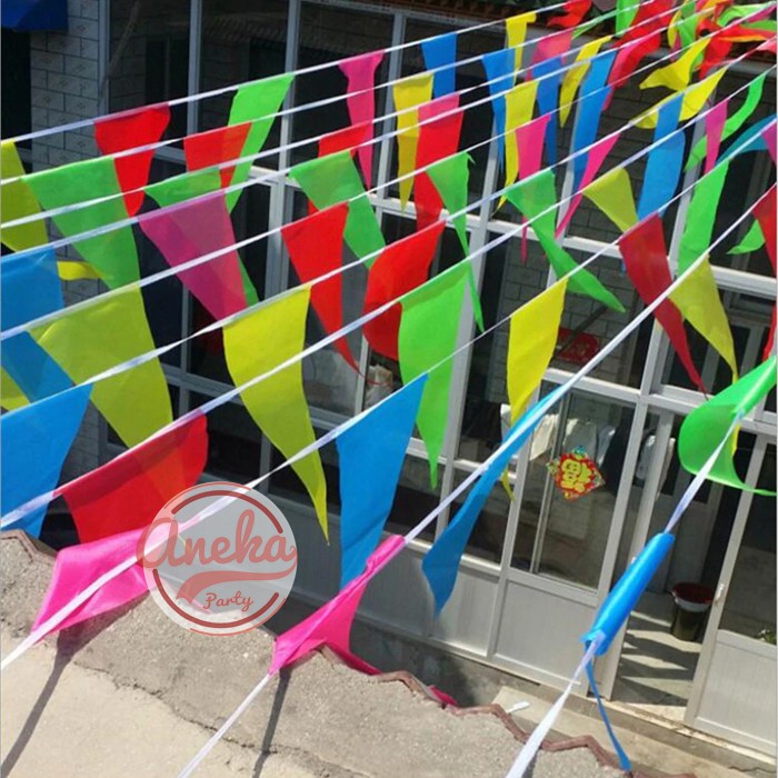 Bendera Segitiga Kain Warna-Warni / Flag Party / Bendera Segitiga kain poliester / bendera karnaval