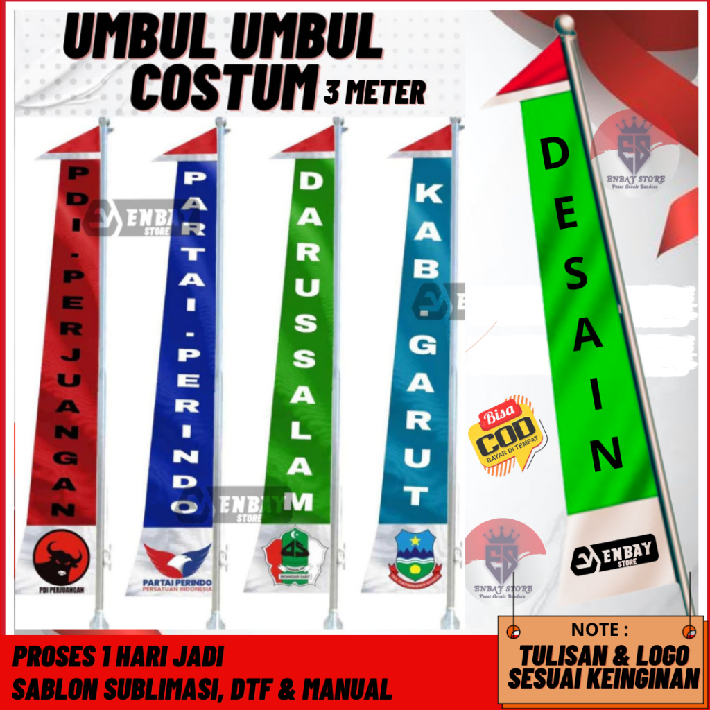 Bendera Umbul Umbul Custom 3 Meter Reques Logo &Tulisan