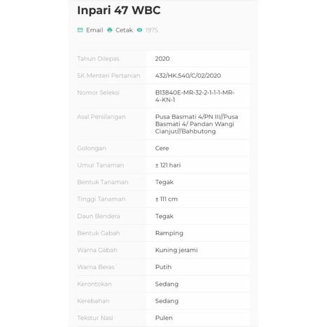Benih Padi INPARI 47 WBC Tahan Hama WERENG 5 kg