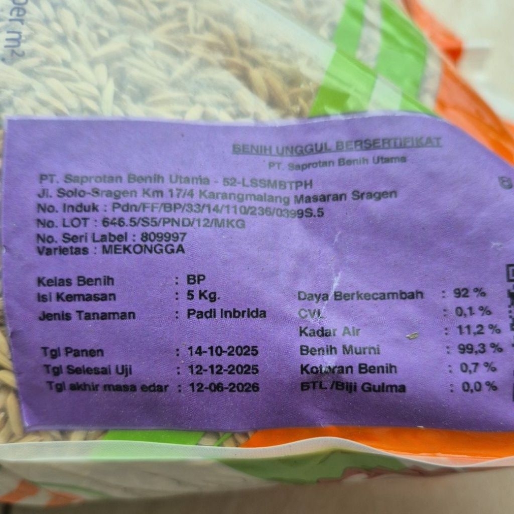 Benih Padi MEKONGGA Jumbo PakTani 5kg exp 06/2026