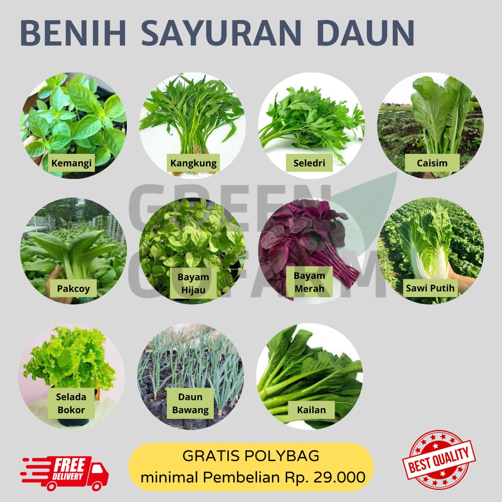 Benih Tanaman - BENIH SAYURAN DAUN (Kemangi, Kangkung, Seledri, Caisim, Pakcoy, Bayam Hijau, Bayam Merah, Sawi Putih, Selada Bokor, Daun Bawang, Kailan)