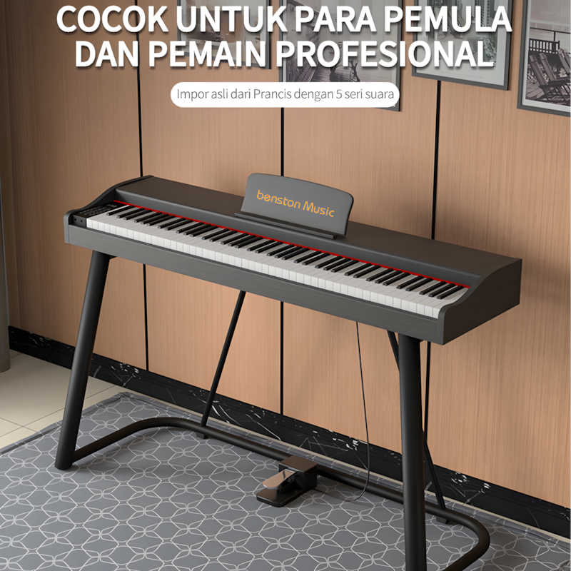 Benston Music-Keyboard elektronik digital, keyboard elektronik 88 tombol, keyboard elektronik khusus pengajaran pemula, keyboard dinamik, koneksi Bluetooth