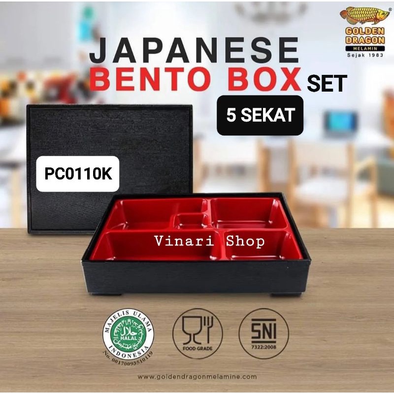 Bento Box Set 5 Sekat 10 inch(PC0110K)Bento Hokben/Piring Sekat Golden Dragon