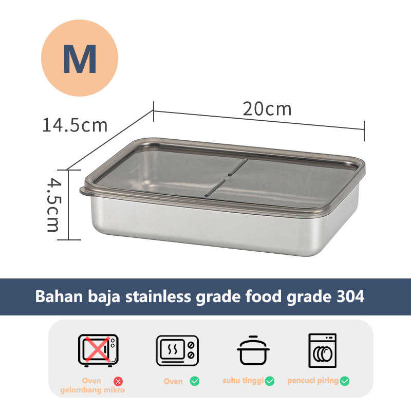 Bento Box Stainless Steel Lunch Container Kotak Penyimpanan Makanan Bekal Makanan