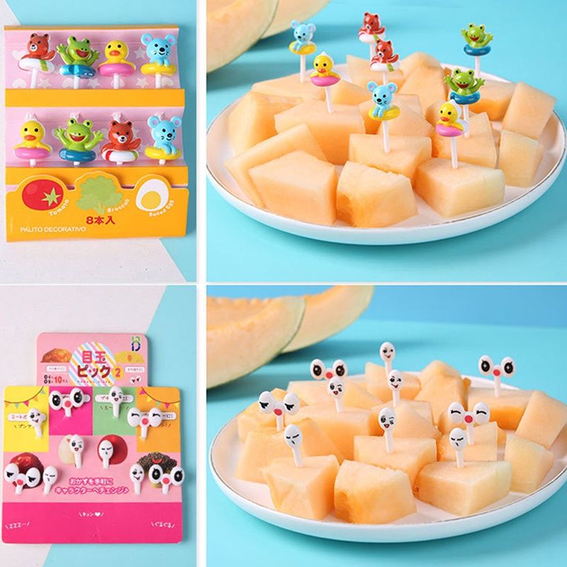 Bento Food Picks / Tusukan Bento / Hiasan Bekal Anak / Garpu Bento Mini Karakter Lucu / Set Garpu Buah Kue/ Makanan Mini Bentuk Mata Kartun 3D
