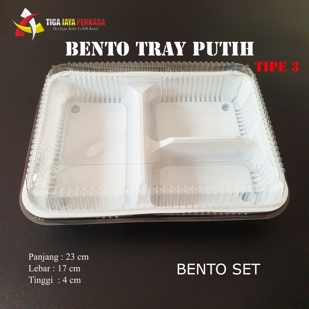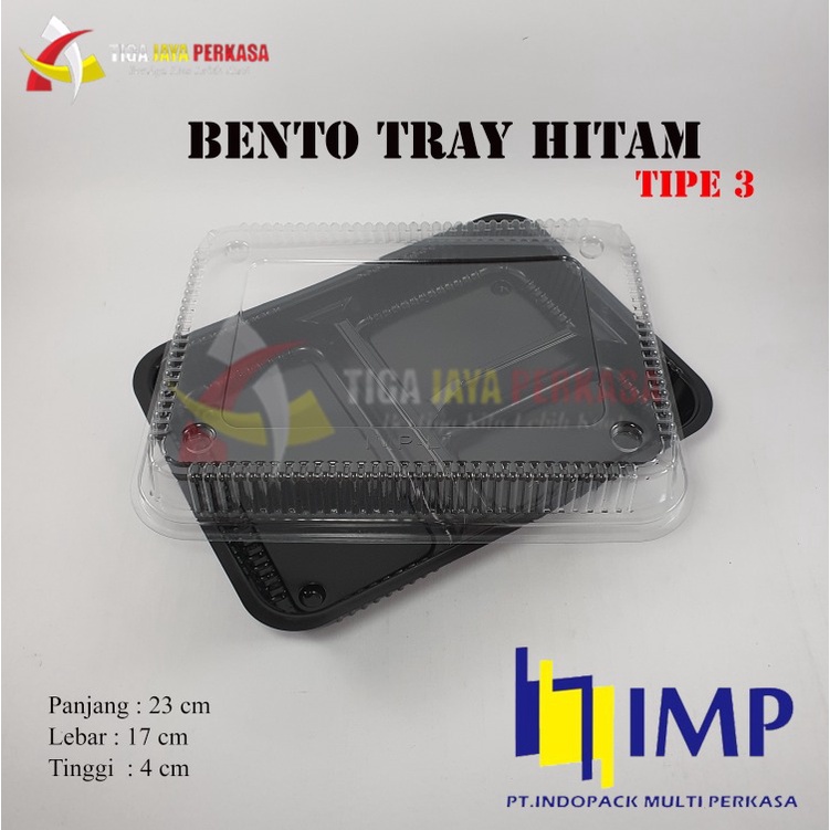 Bento Tray Sekat 3 IMP Hitam-Putih / Mika Box Bento + Tutup - isi 25pc