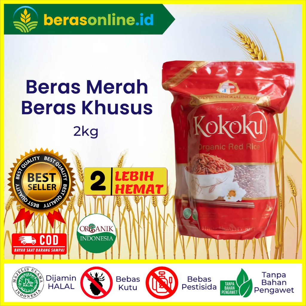 Beras Online - Kokoku Beras Merah Organik 2 kg