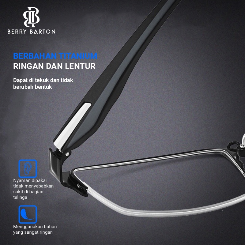 Berrybarton - Kacamata Bisnis Pria Half Frame Anti Radiasi Photocromic Blueray 66071