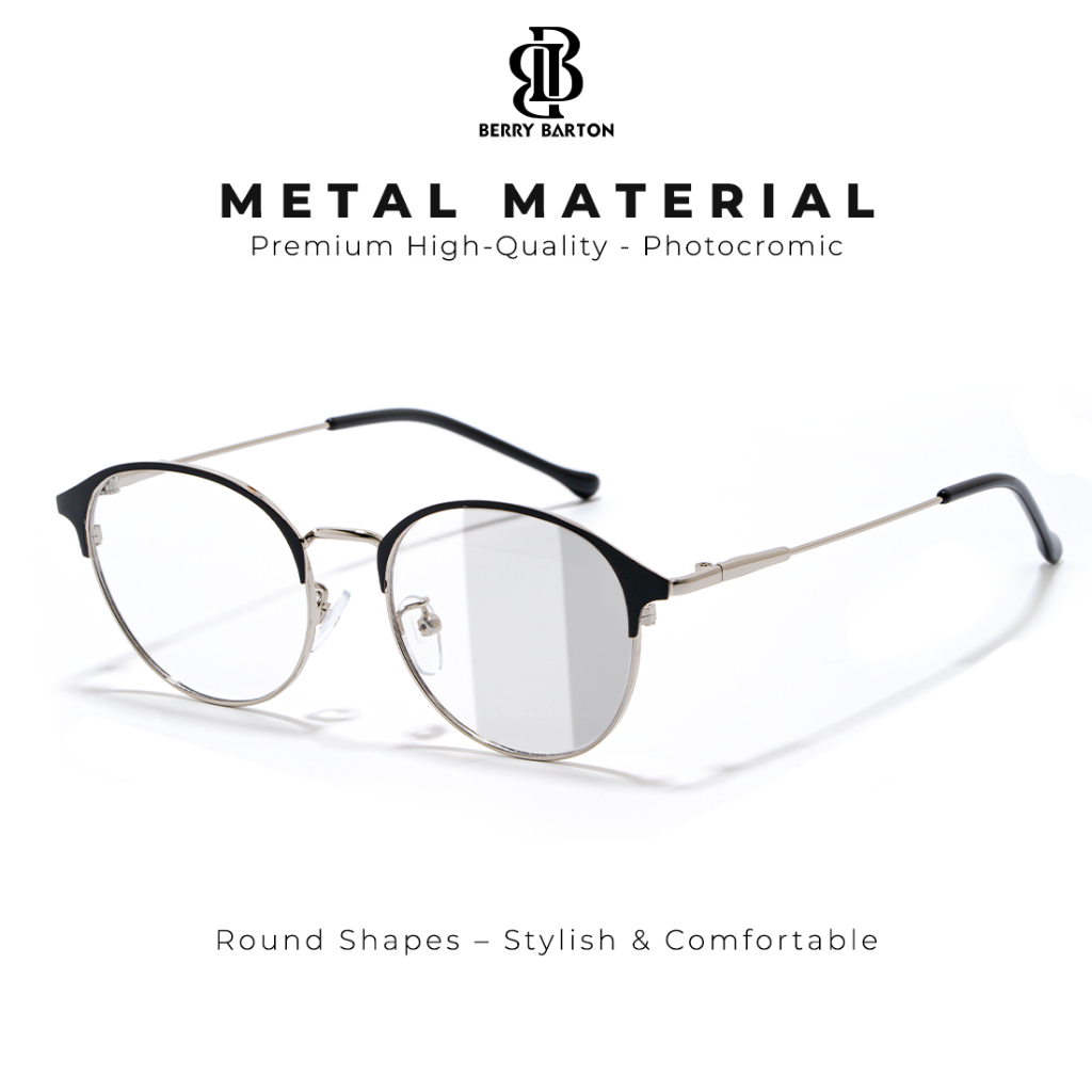 Berrybarton Kacamata Photocromic 1920 - Gratis Lensa Minus/Silinder Photocromic - Kacamata Pria Wanita