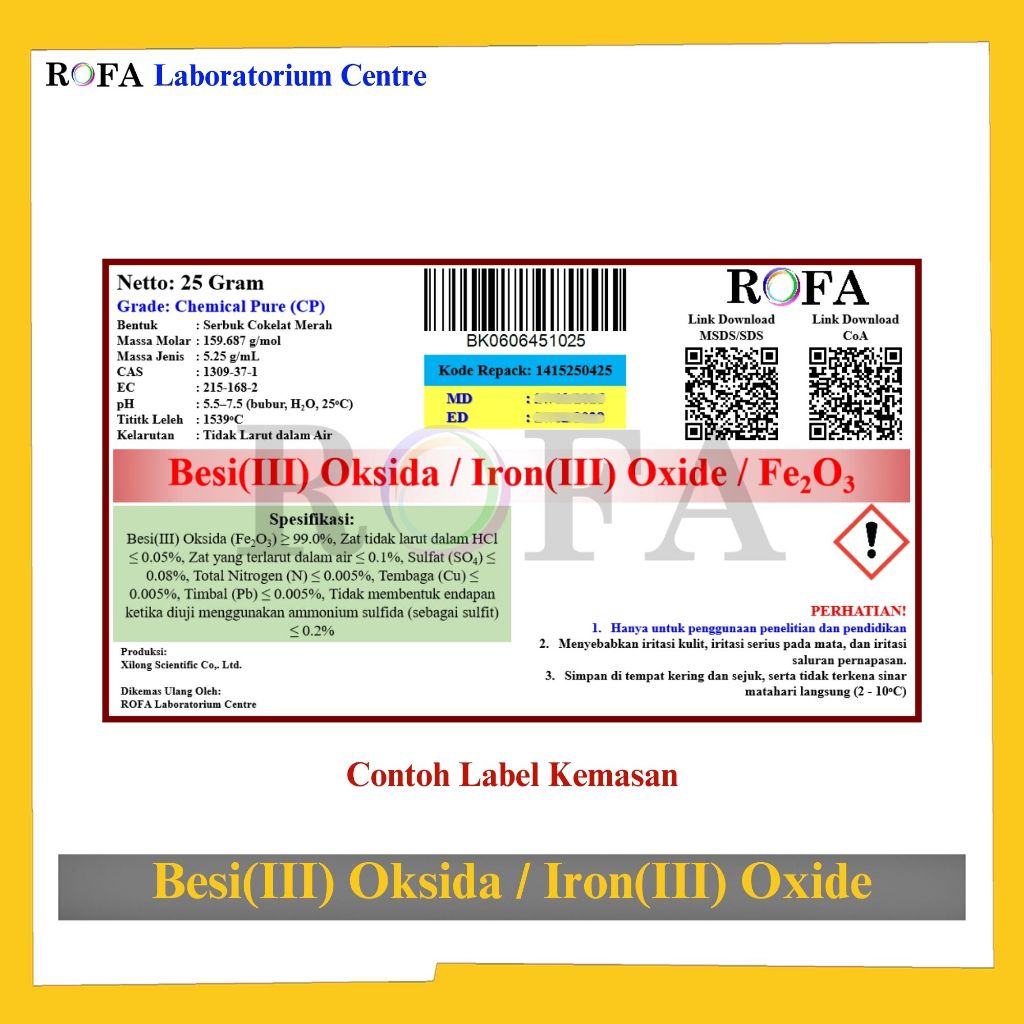 ROFA Besi(III) Oksida / Iron(III) Oxide / Ferric Oxide / Red Iron Oxide / Fe2O3 CP 25 Gram
