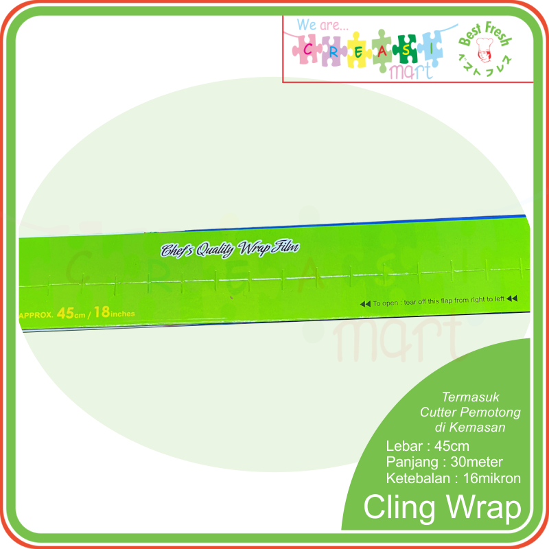 BestFresh Cling Wrap Lebar 45cm Panjang 30meter Food Grade + Cutter Pemotong & HALAL