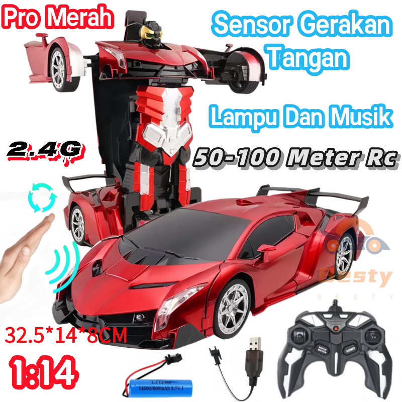 Besty 2.4G Rc Mobil Remote Transformable Robot 1:14 Sport Car Robot Mobil Remote Control Besar Mainan Autobot Remot Kontrol Mobil Berubah Jadi Robot Rc Mobil Remote Transforming Robot