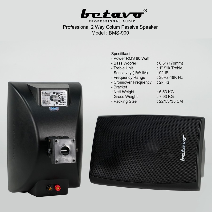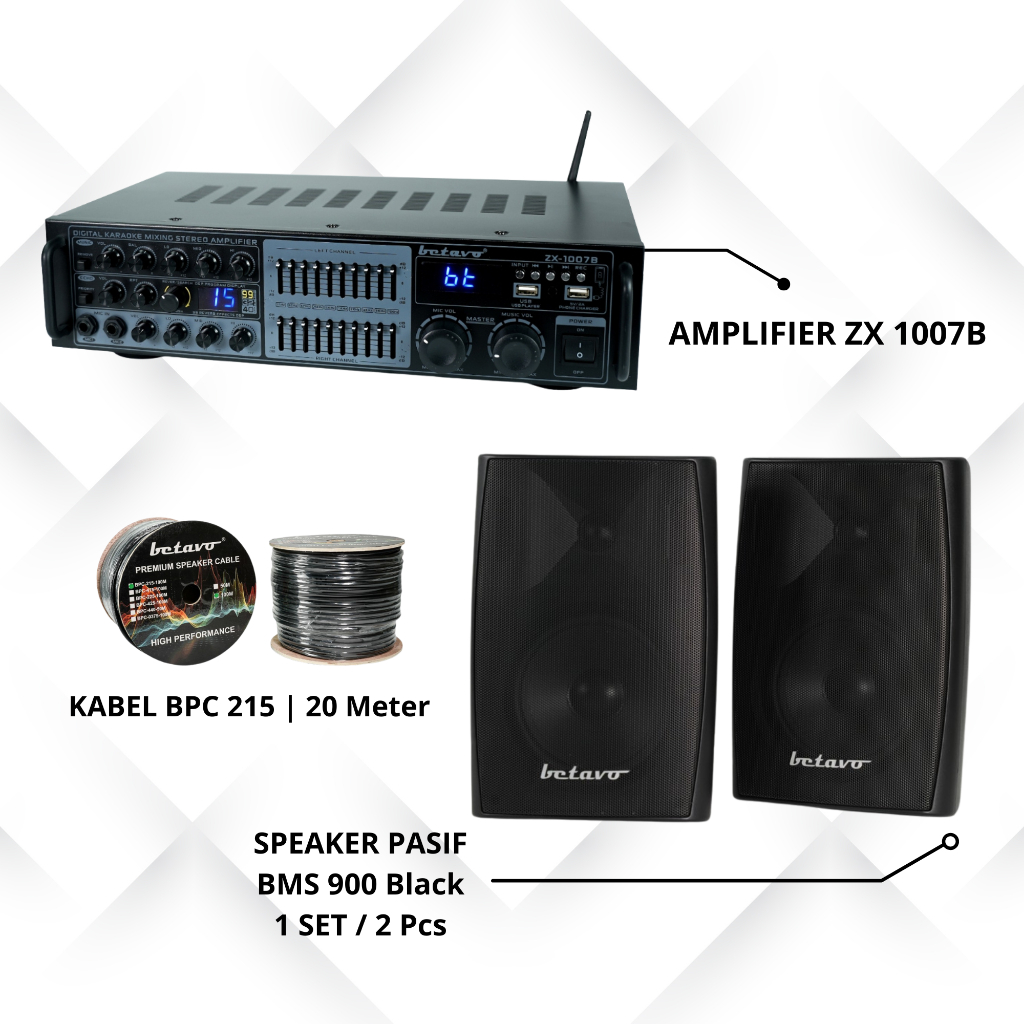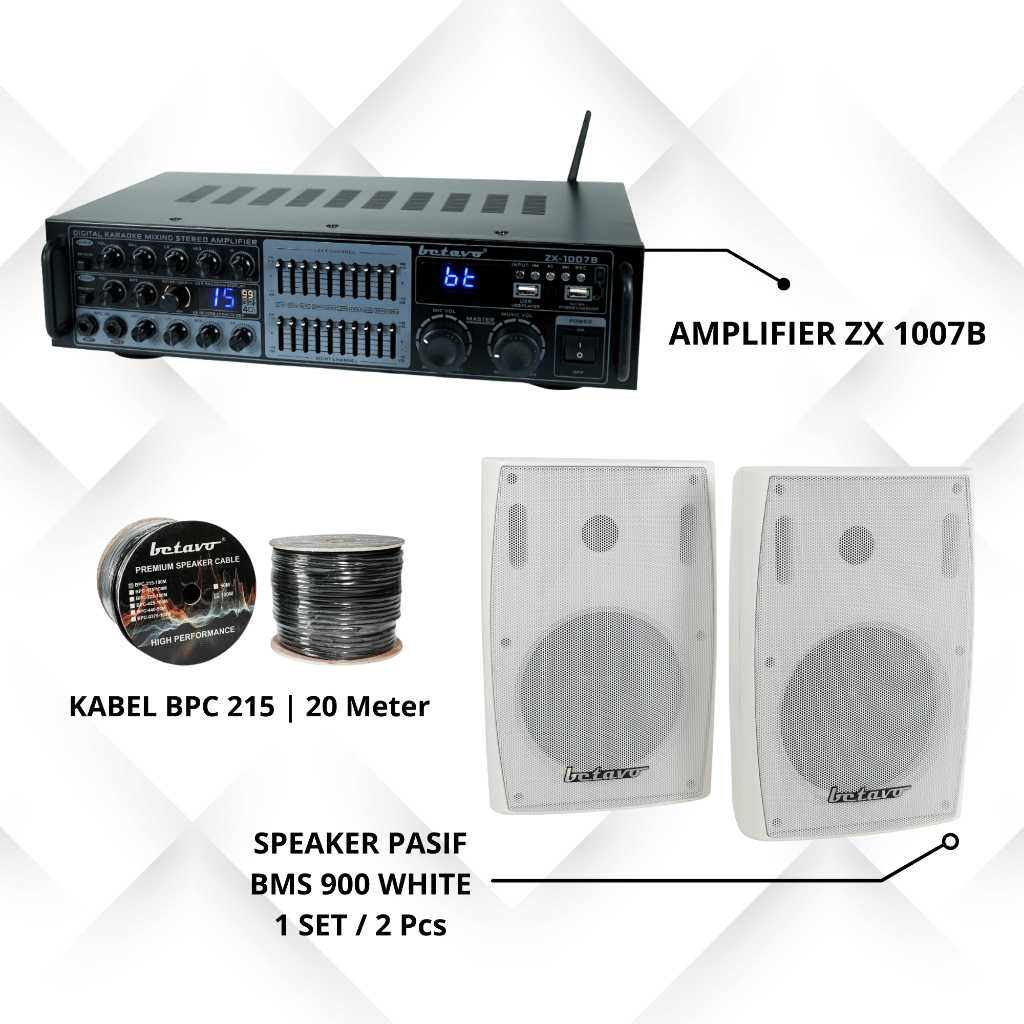 Betavo Audio Sound System Cafe, Masjid, Kantor Paket A | Amplifier + 1 Set Speaker Pasif + Kabel