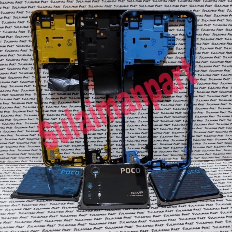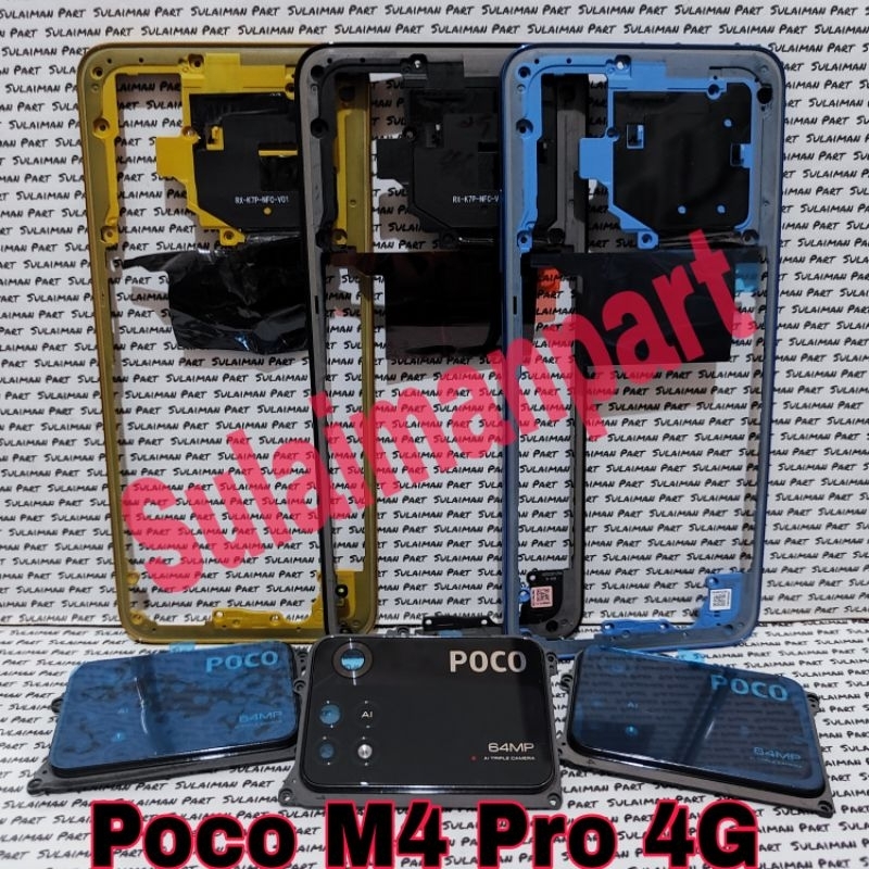 Bezzel Xiaomi Poco M4 Pro 4G Tulang Samping Tutup Mesin + Ring Kaca Kamera + Tombol Luar Volume
