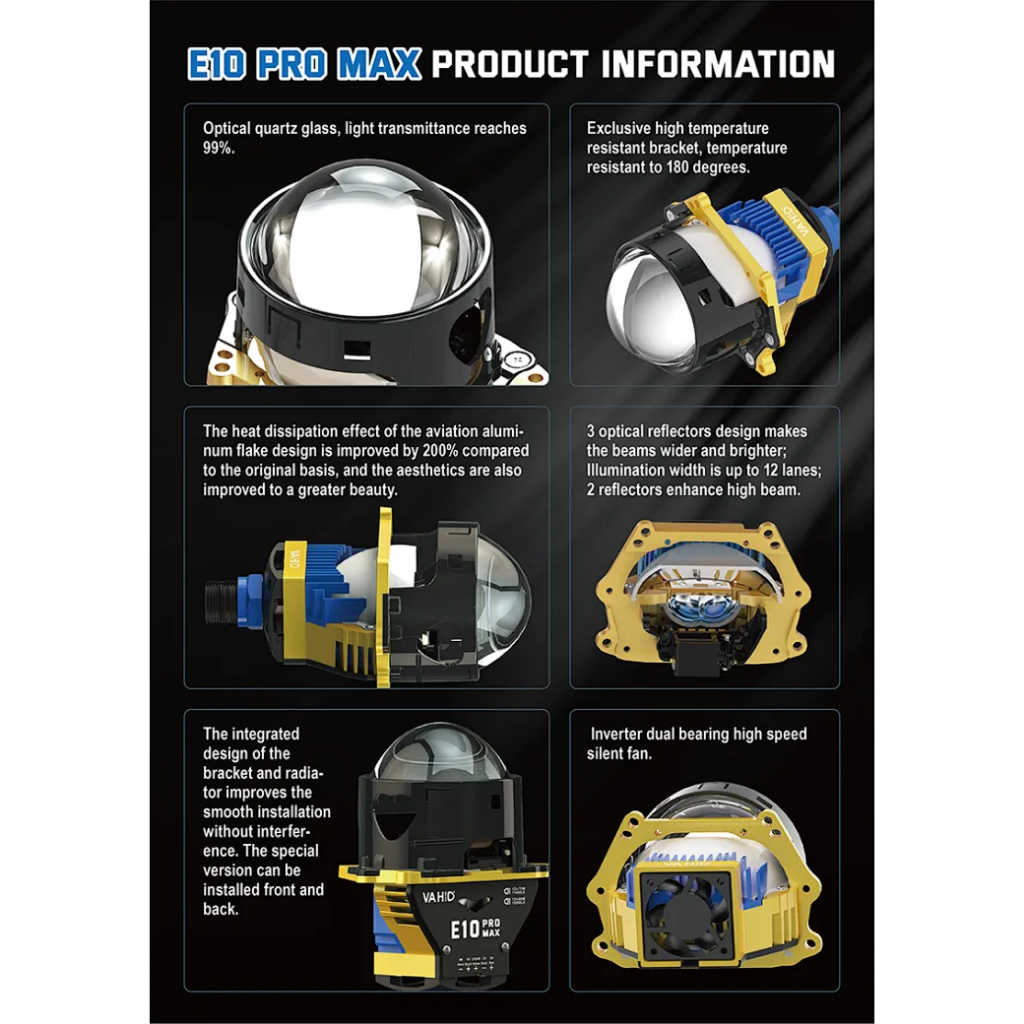 E10 Pro Max - Paket Komplit Set Biled 3 inch Vahid E10 Pro Max | Biled Projie 3 inch Low Beam 70 Watt High Beam 80 Watt | 3.0" LED Projector Lens Headlight E10 Pro Max Vahid Low power Consumption High Efficiency High Power Best Quality Performance