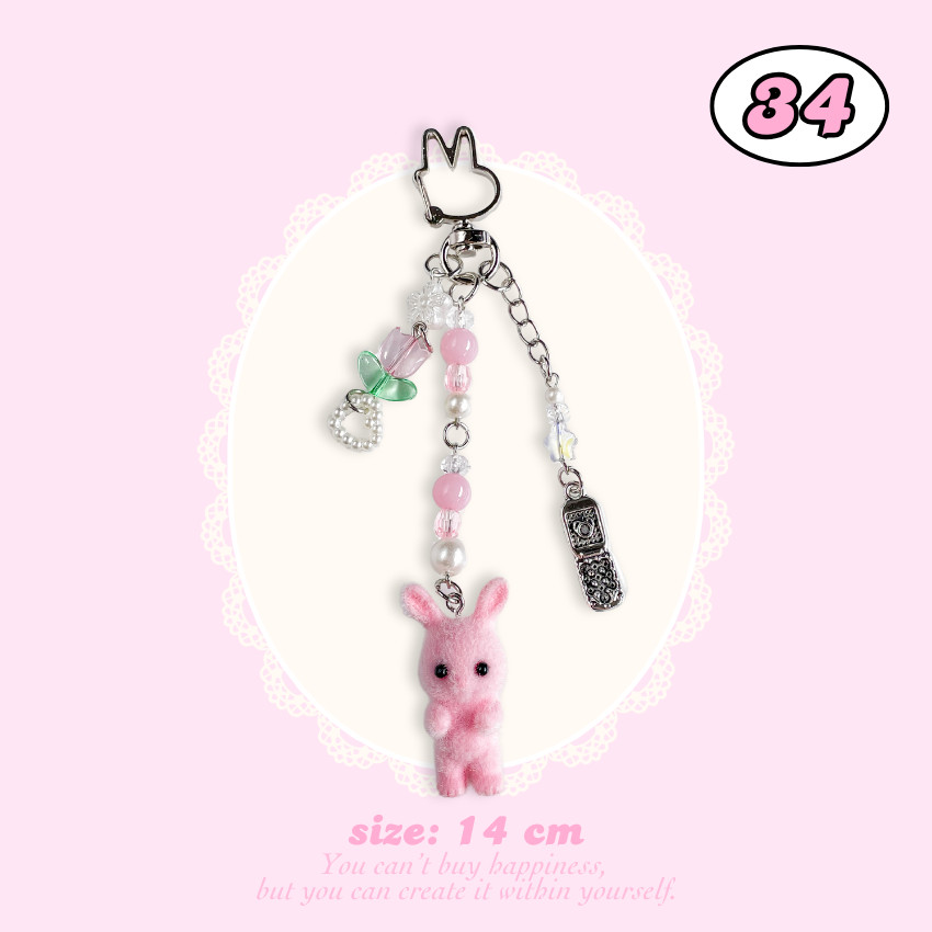 Bibimcat - Petite Friends Keychain Phone Strap / Gantungan Kunci HP Binatang Kelinci Mini Trinkets Lucu