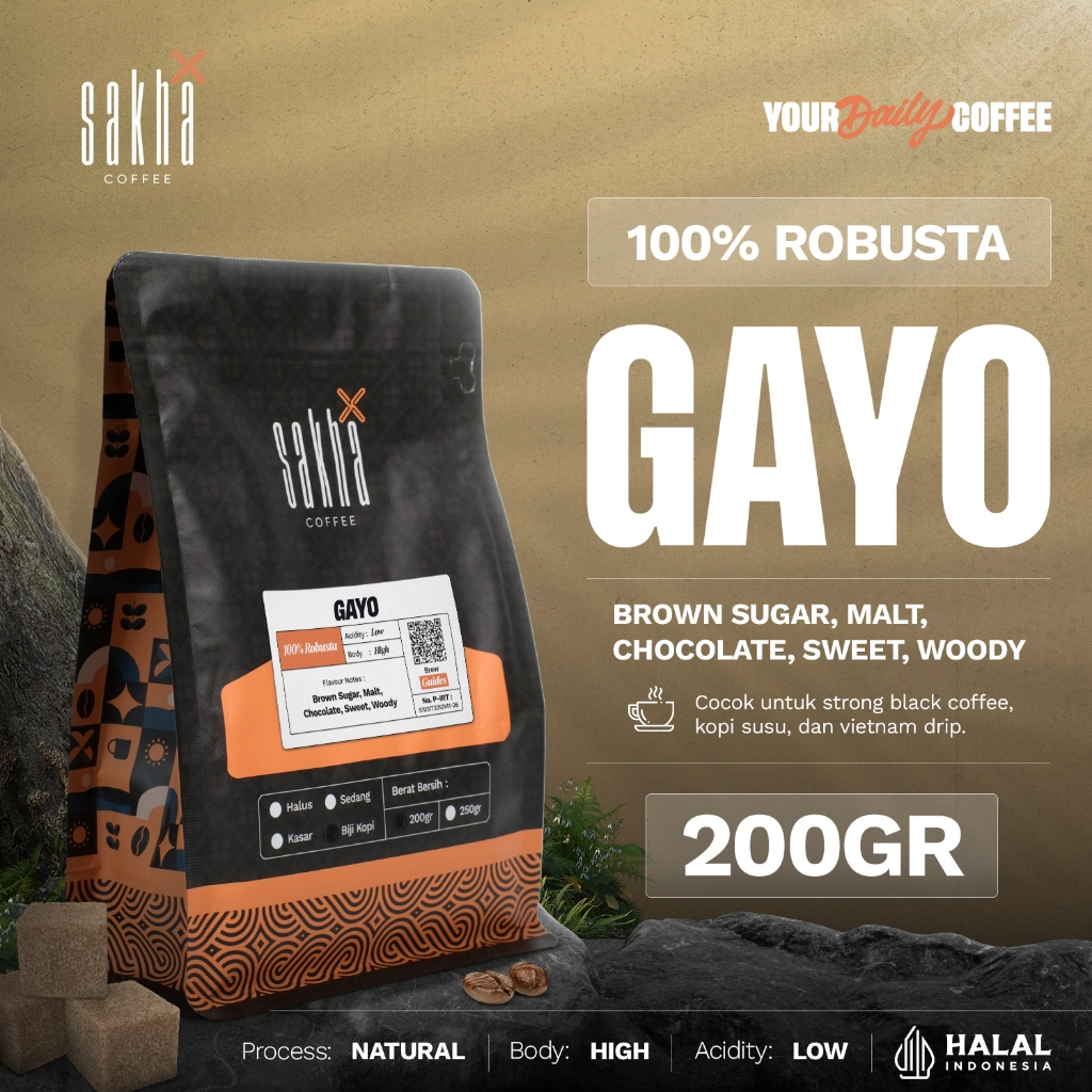 Biji Kopi Bubuk Fine Robusta Gayo Aceh Sumatra Espresso Coffee Roast Bean Coffe Sakha Roastery 200gr