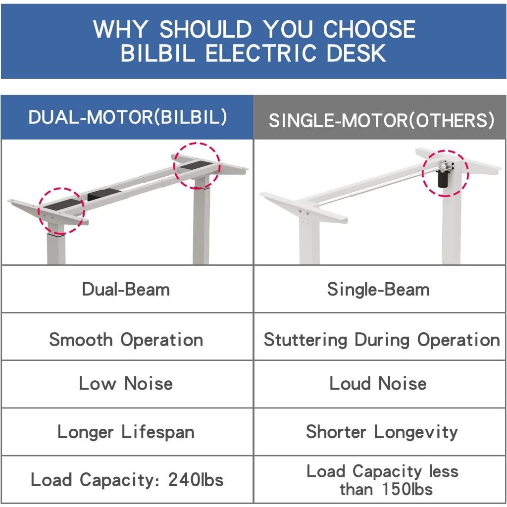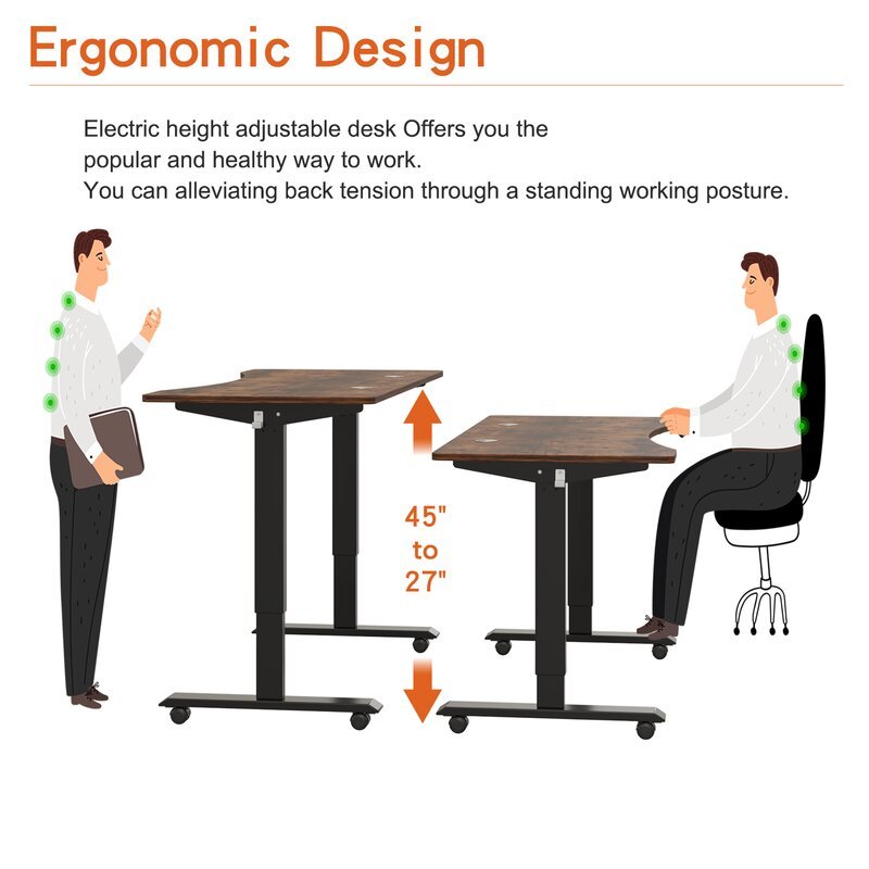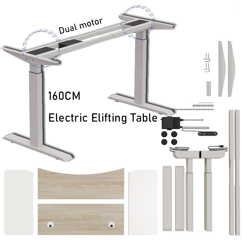 63 inches 1.6M Electric Standing Desk Dual Motors Desk Height Adjustable Stand Desk Laptop Table with Table Top U shape