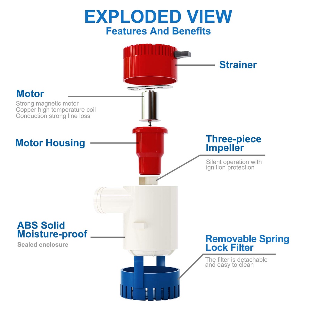 Bilge Pump Pompa Air Celup 12V 1100GPH Marine Lambung Kapal Pompa Submersible Kapal Aksesoris DC 12V