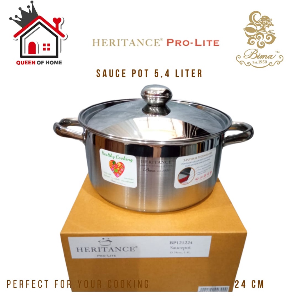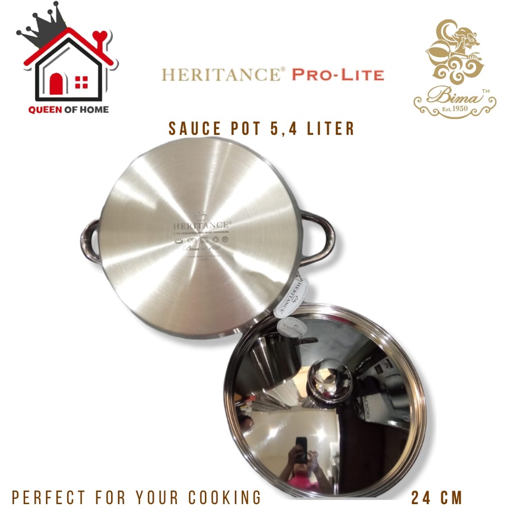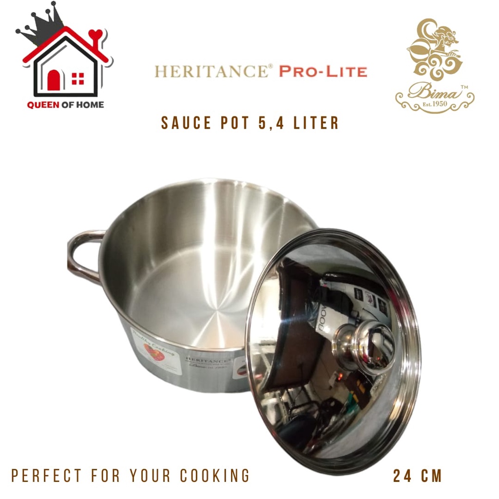 Bima Heritance Pro-Lite Sauce Pot 24cm 5,4Liter 3-Ply Stainless Steel Panci Induction BP121224