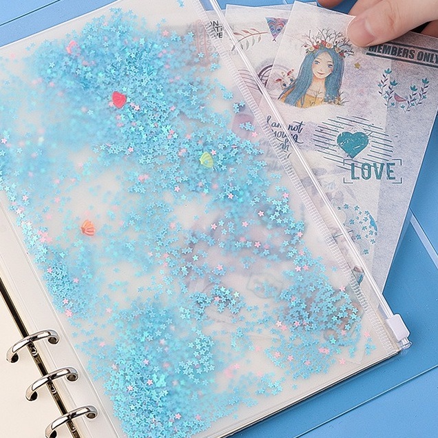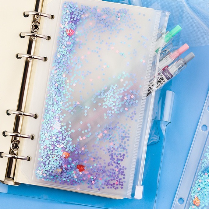 Binder A6 Keuangan PVC Jelly Cover Case Album 6 Ring Warna Pink Purple (Lilac) Tosca zipper ziplock buku kertas binder notes kuliah kantor tempat foto organizer transparan sequin kpop photocard bts