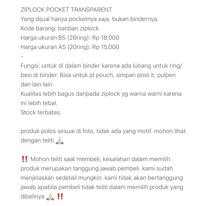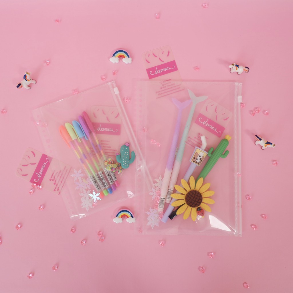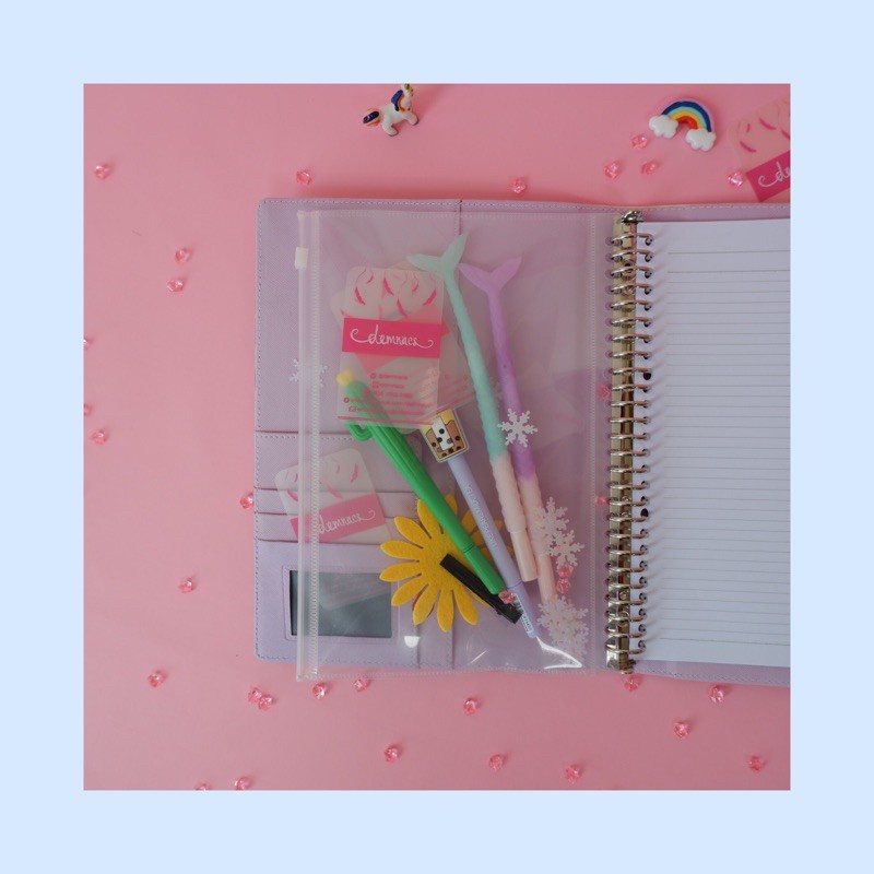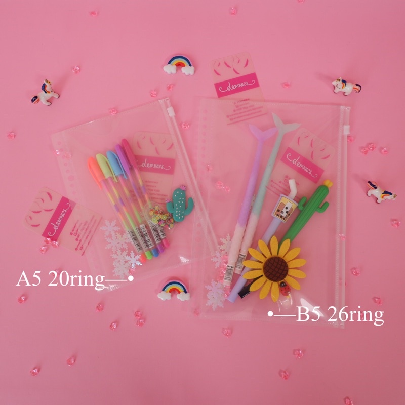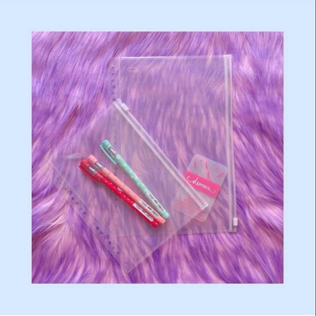 Binder Pocket Ziplock Transparan zipper UNTUK binder A5 20ring, B5 26ring, A6 6ring multiholes zip