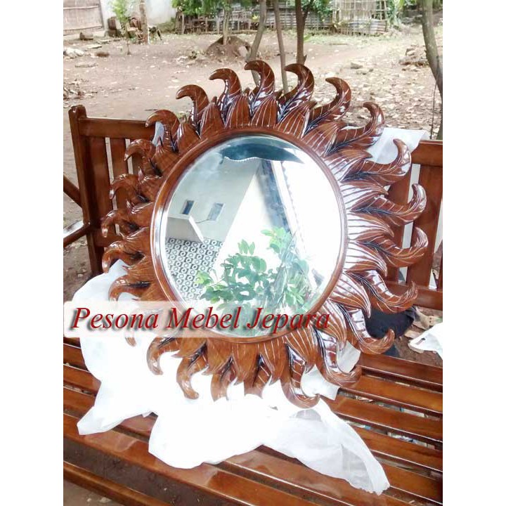 Bingkai atau Frame atau Pigura Daun Cermin Matahari Kayu Jati