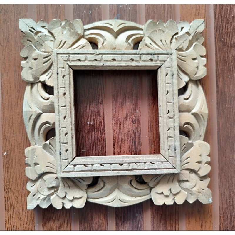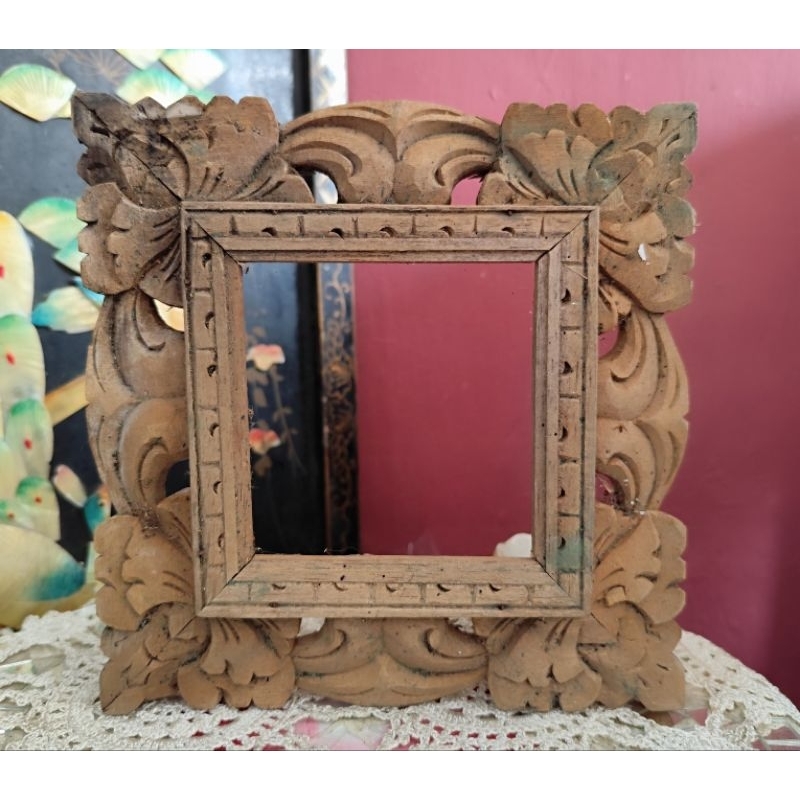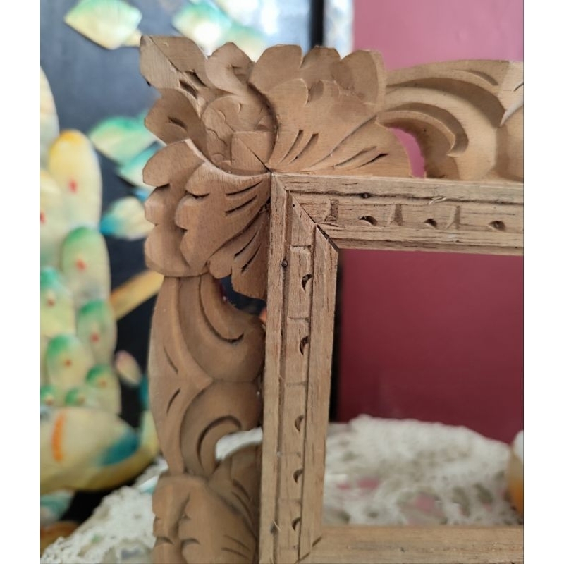 Bingkai ukiran Bali Bunga kayu buatan tangan Jadul Vintage klasik Artistik 20X19cm Harga Satuan