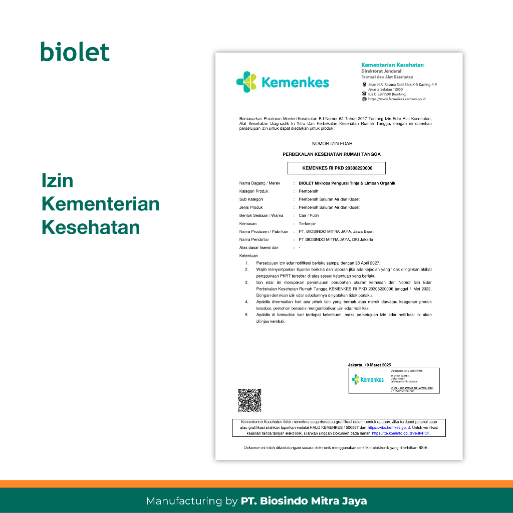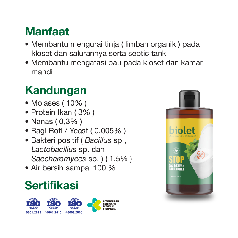 Biolet 100% Ampuh Cegah Septic Tank Mampet, Bakteri Pengurai Alami , Toilet & Kloset Bebas Mampet
