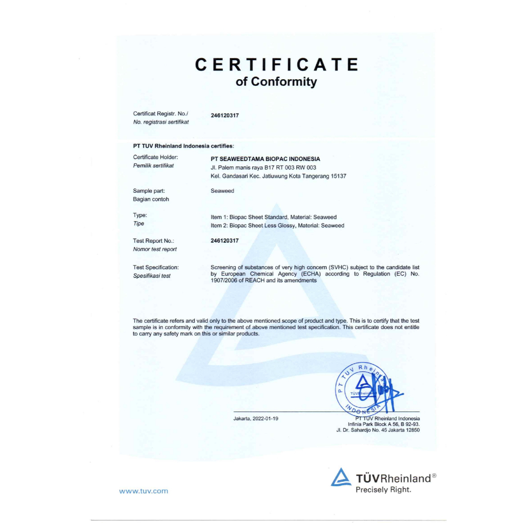 Biopac Sachet Ramah Lingkungan dan Edibel 4 x 4 Cm² Edible Sachet Untuk Jamu Bumbu Dapur