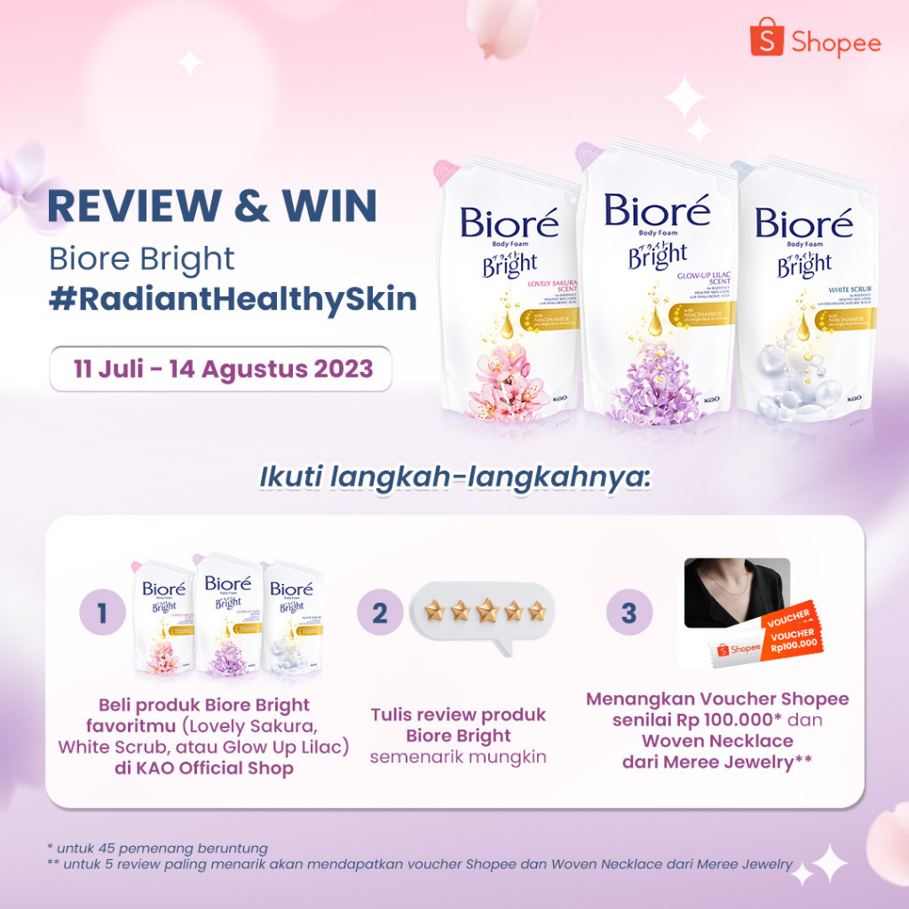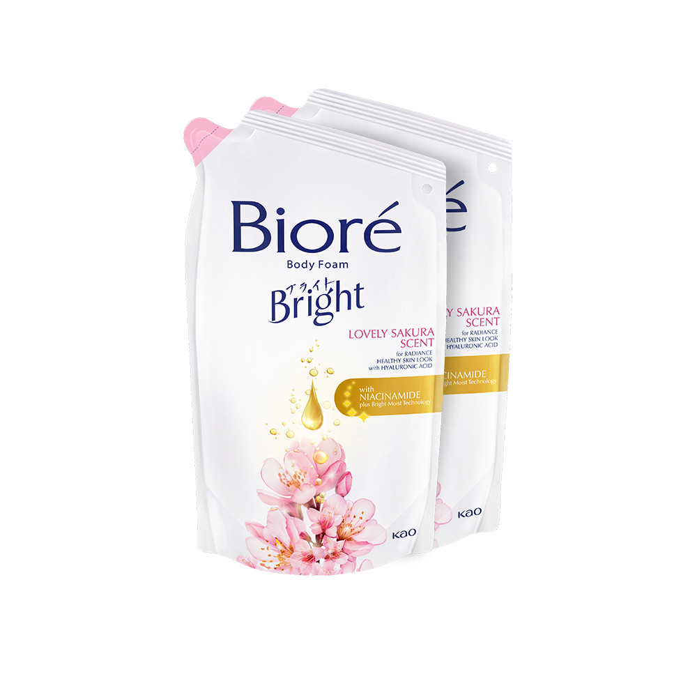 Biore Bright Sabun Mandi Cair Pencerah Kulit Lovely Sakura Hyaluronic Acid Refill 400 ml Twin Pack - Sabun Cair Body Wash