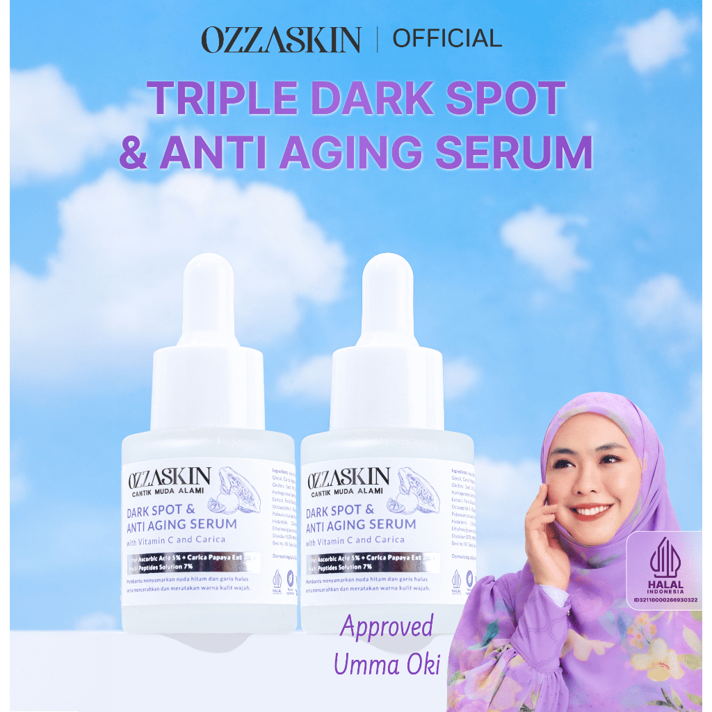 Bisa COD Ozzaskin Official By Oki Setiana Dewi Combo Dark Spot & Anti Aging Serum 2 Pcs Dark Spot & Anti Aging Serum Vit C and Carica sebagai Pencerah Wajah Alami Pelembab Perawatan Wajah Membantu Memudarkan Flek
