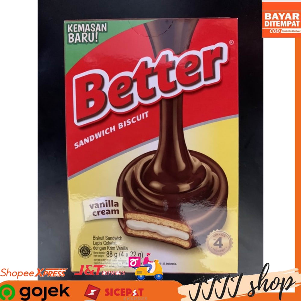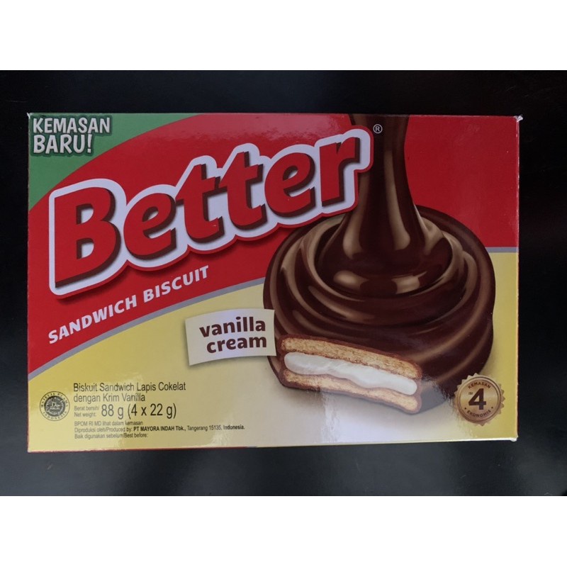 Biskuit Better Sandwich Cokelat Vanilla Cream 88gr