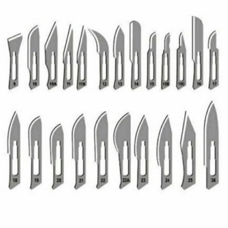 Bisturi mess surgical blade no. 10 11 14 15 18 20 21 22 23 24 25 per pcs