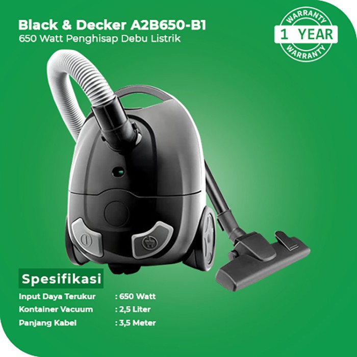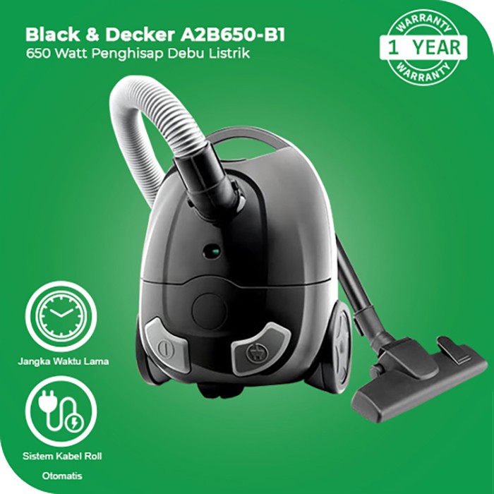 Black & Decker Vacuum Cleaner Dry / Penghisap Debu Listrik 650Watt A2B650