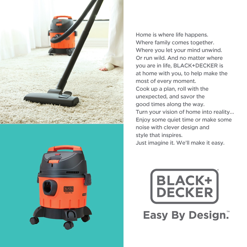 Black+Decker Vacuum Cleaner / Penghisap Debu Wet Dry 1200W 10L BDWD10-B1